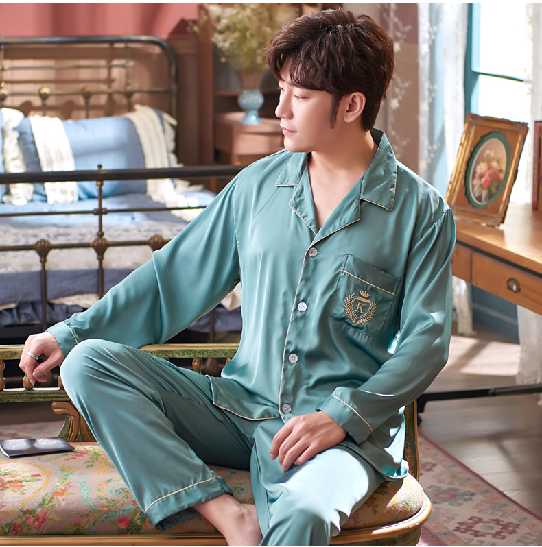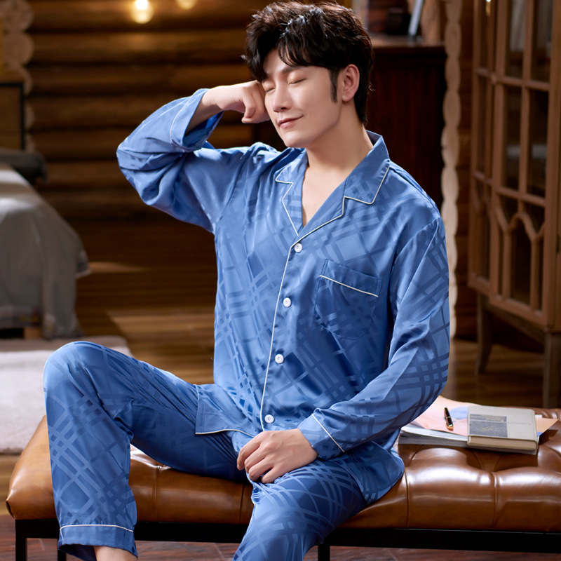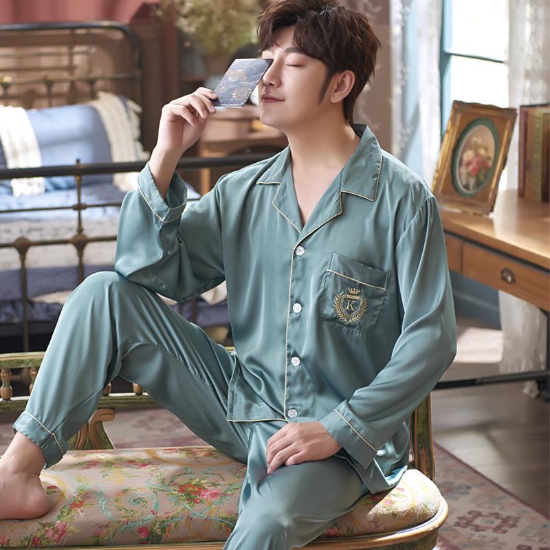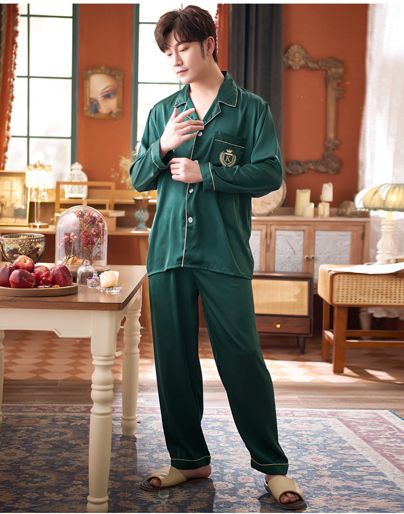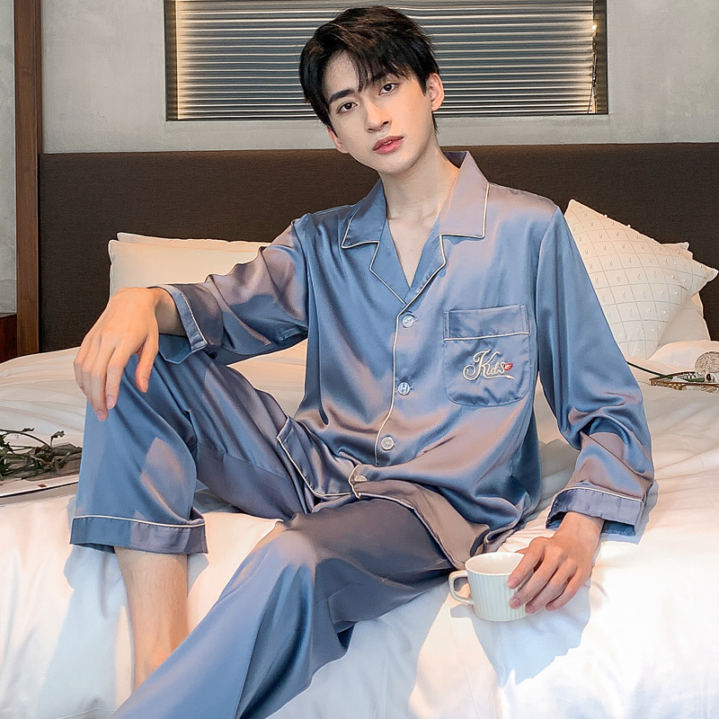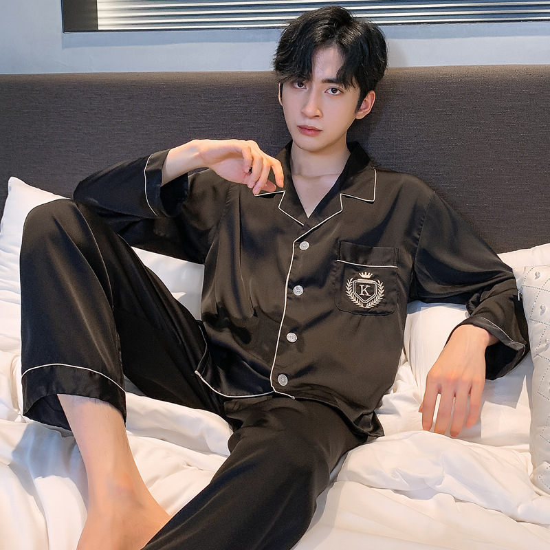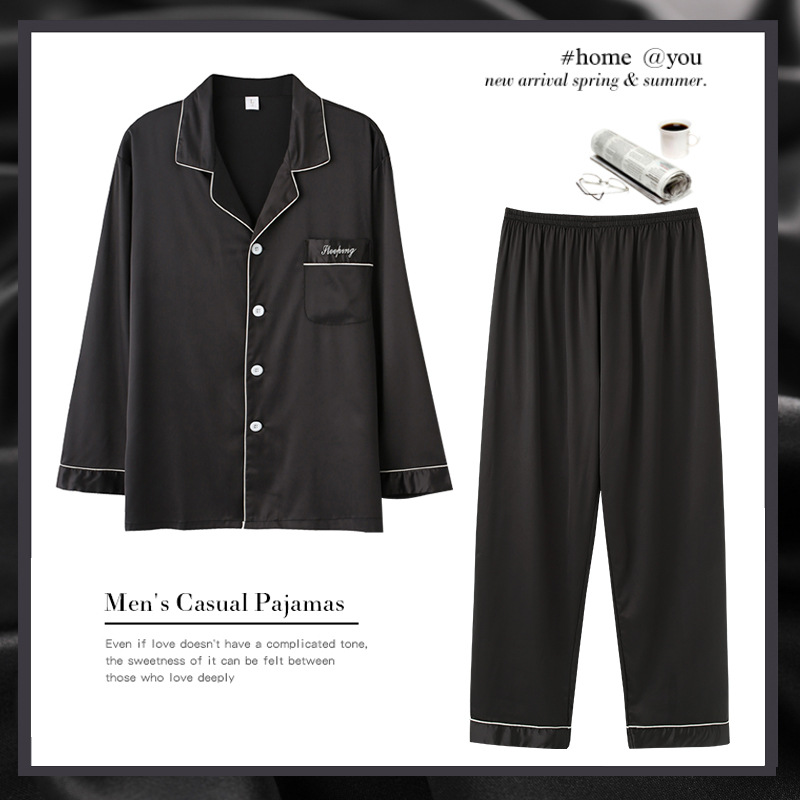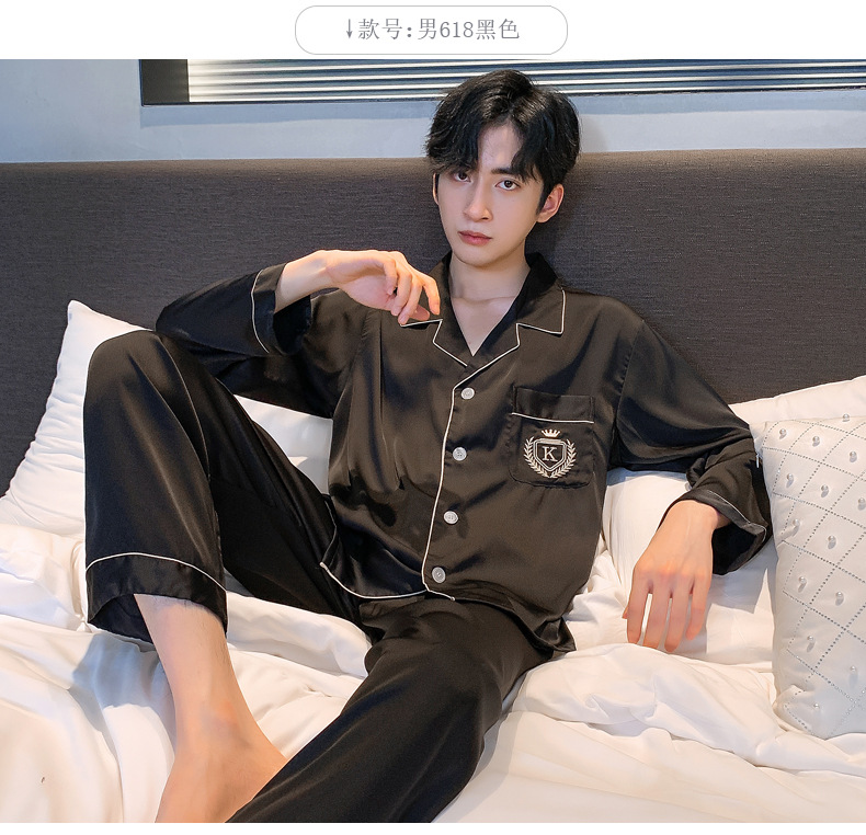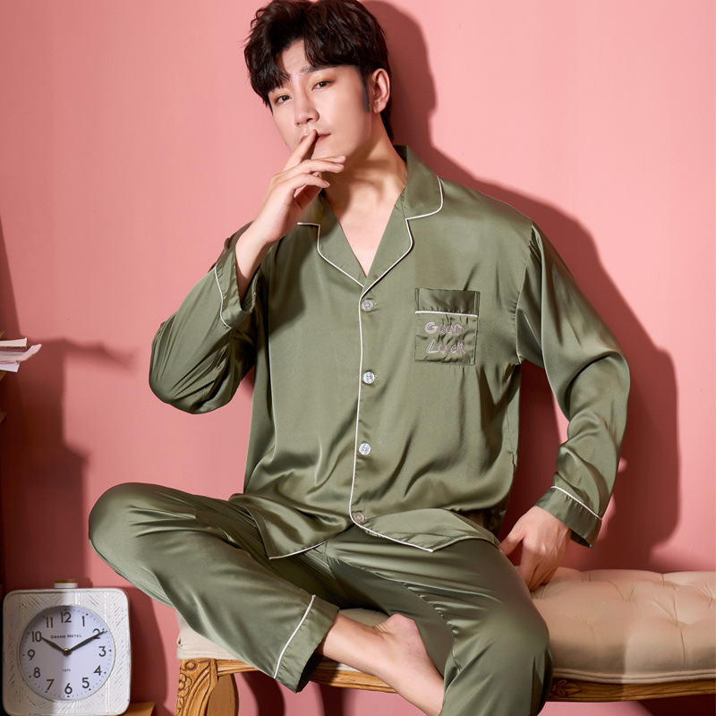 남성용 아이스 실크 잠옷 봄, 가을 긴팔 카디건 시뮬레이션 실크 얇은 2025 새로운 간단한 가정 의류 여름스토어 가기