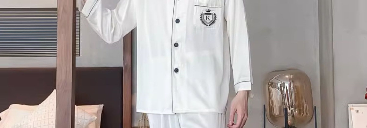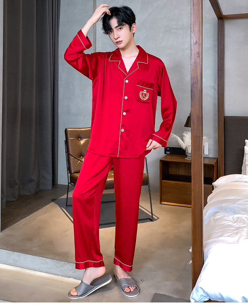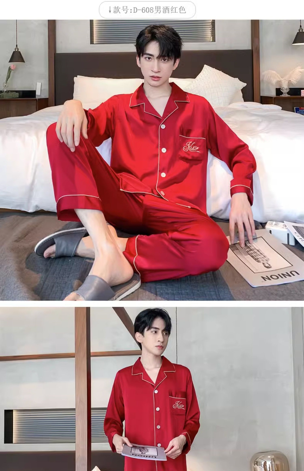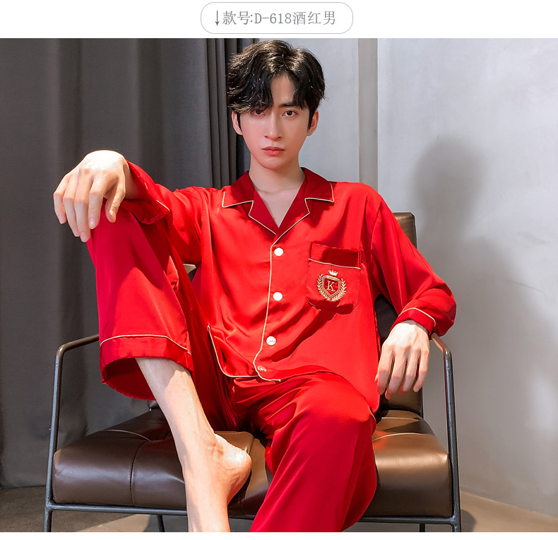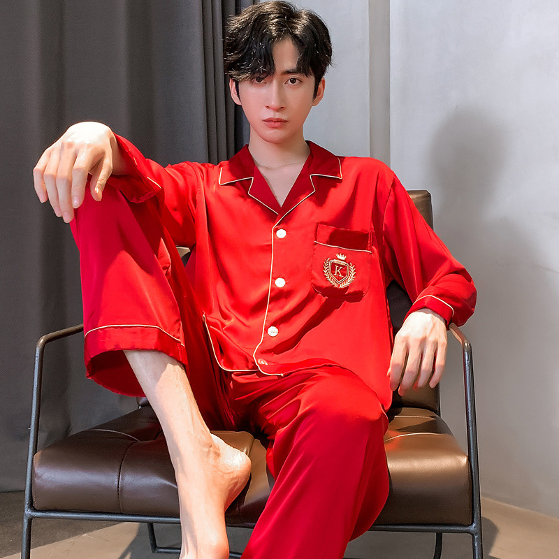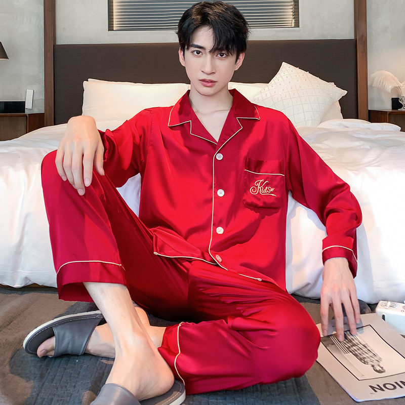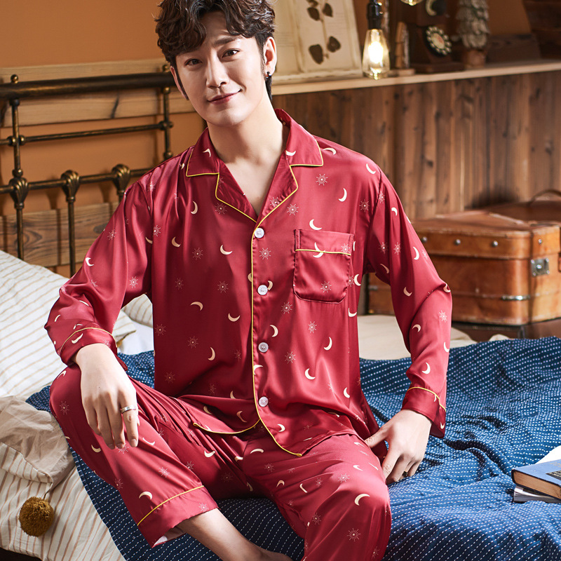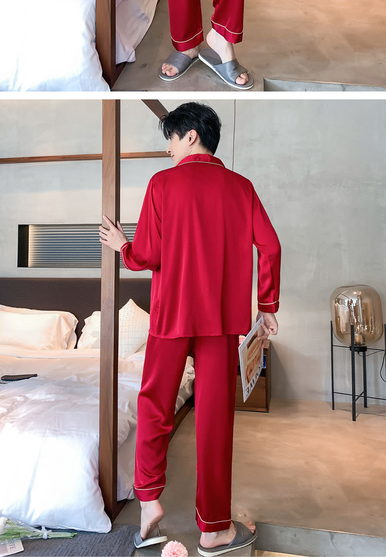 남성용 아이스 실크 잠옷 봄, 가을 긴팔 카디건 시뮬레이션 실크 얇은 2025 새로운 간단한 가정 의류 여름스토어 가기