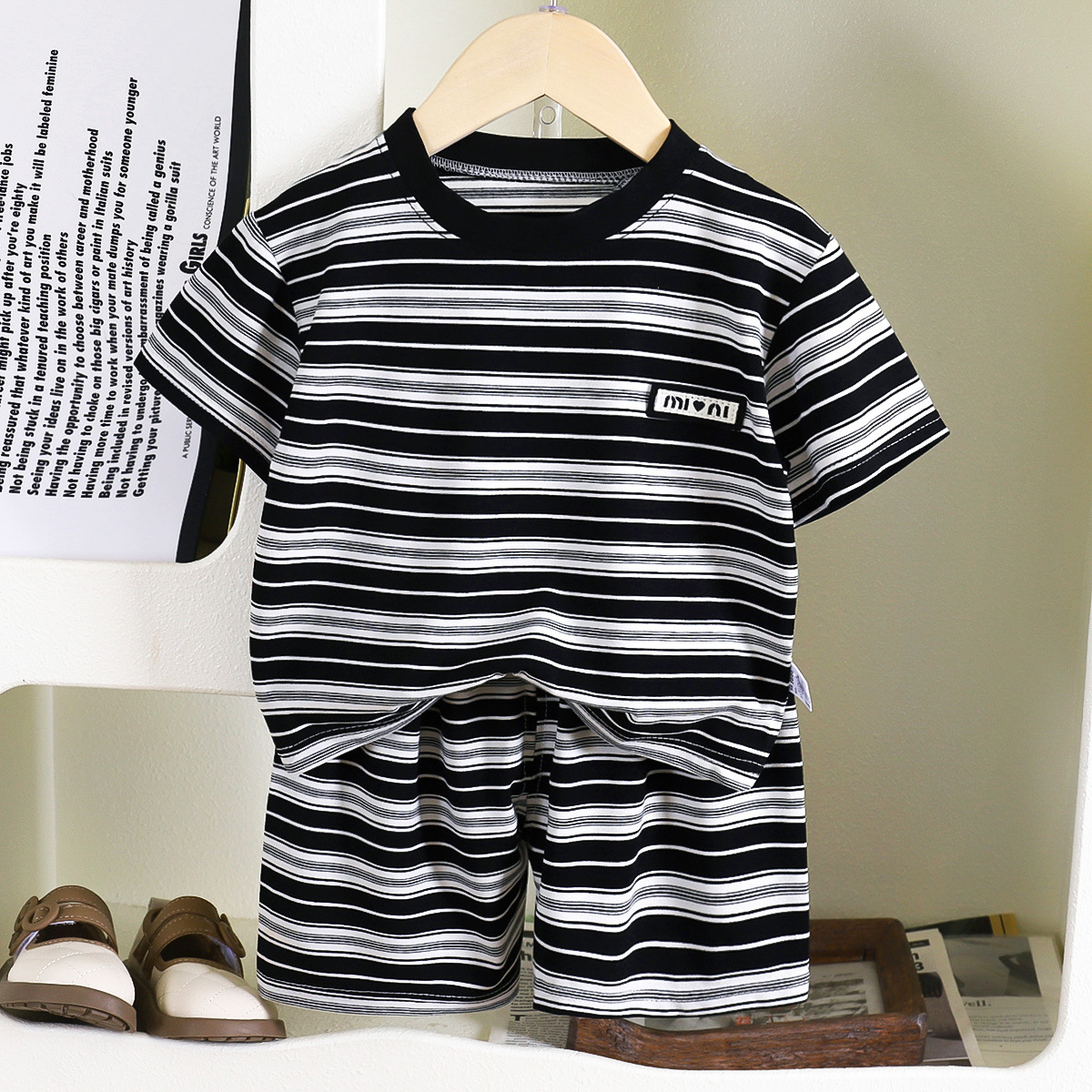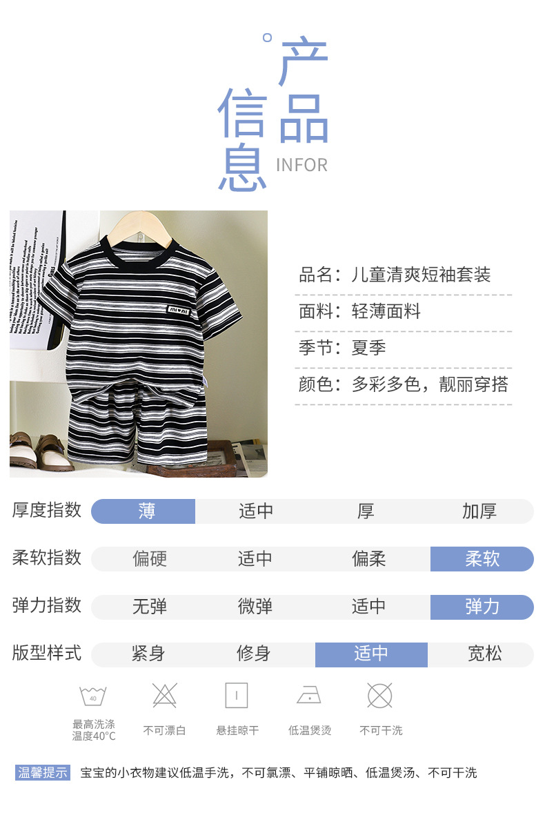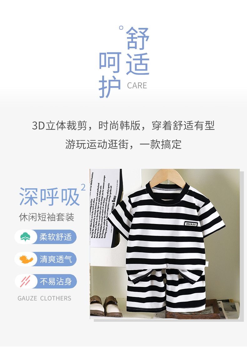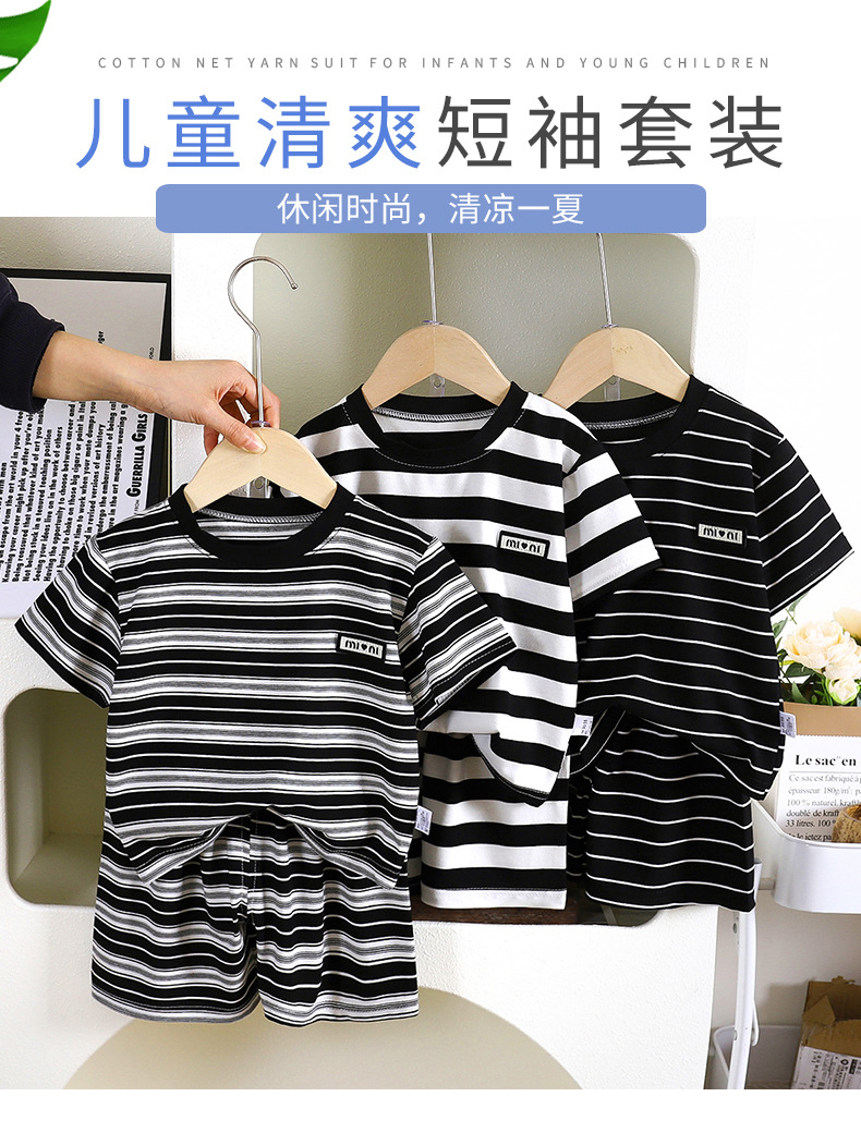 어린이 반팔 세트 여름 새 소년 줄무늬 통기성 아기 반바지 투피스 여름 아동복 도매스토어 가기