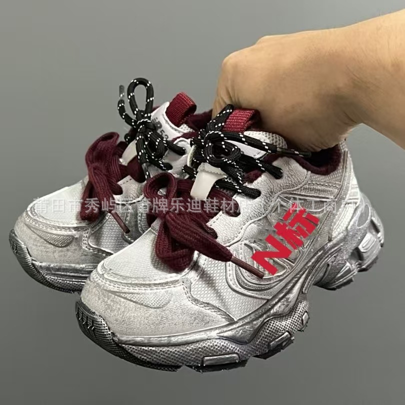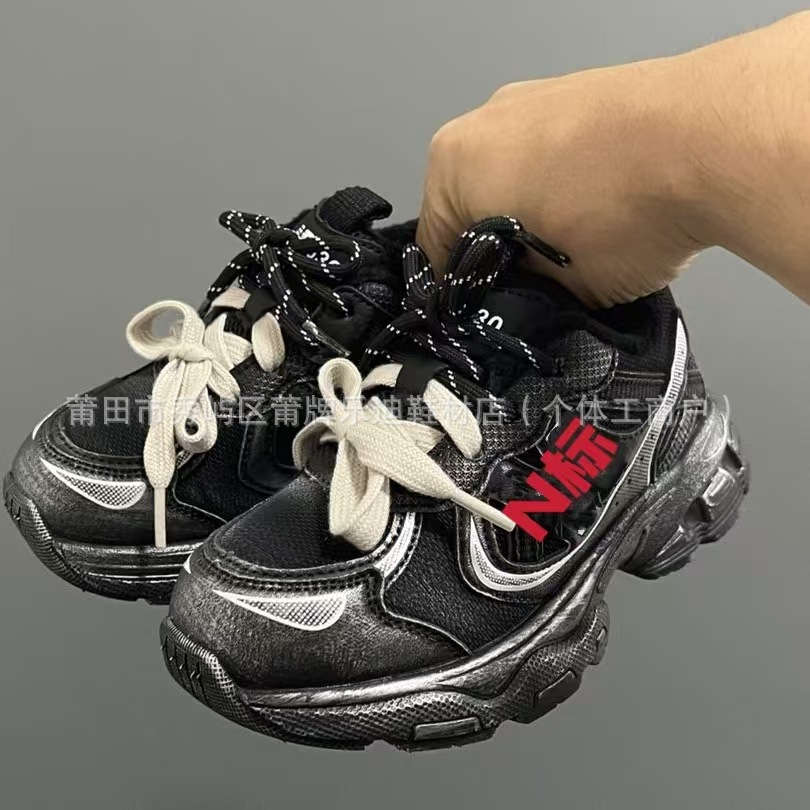 Putong N530 Broken N2024 새로운 벨벳 가을 겨울 어린이 더블 신발 끈 경량 아빠 신발 스포츠 어린이 신발