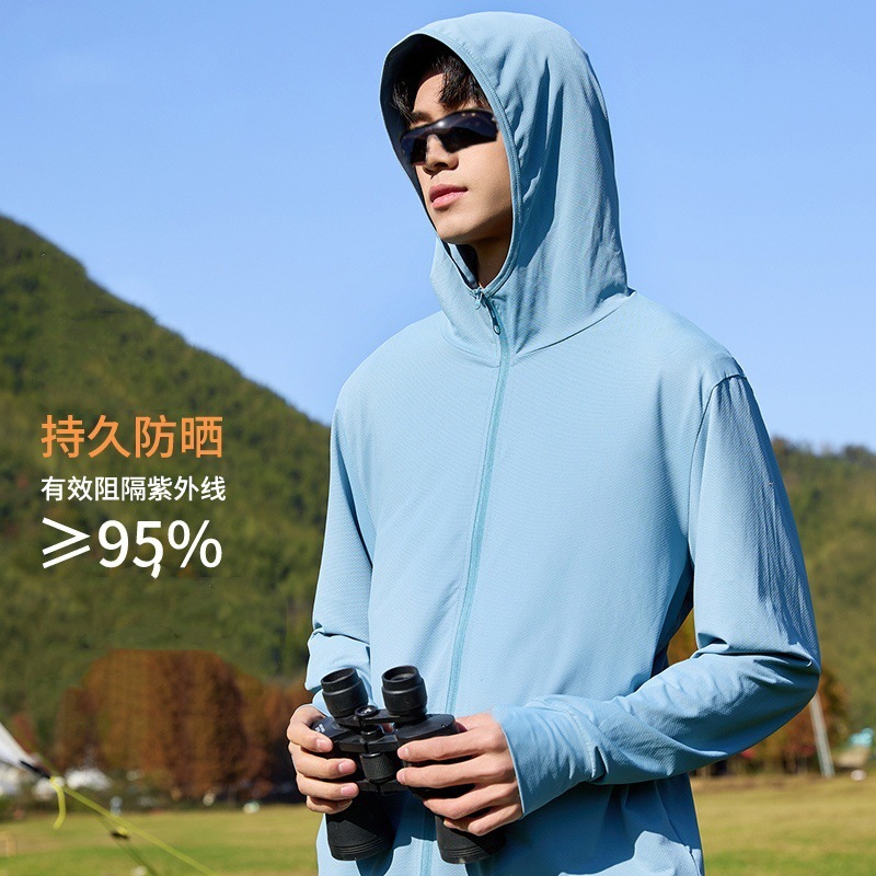 태양 보호 의류 여름 얼음 실크 태양 보호 의류 초박형 후드 짧은 코트 남성용 자외선 방지 통기성 속건 낚시 의류스토어 가기