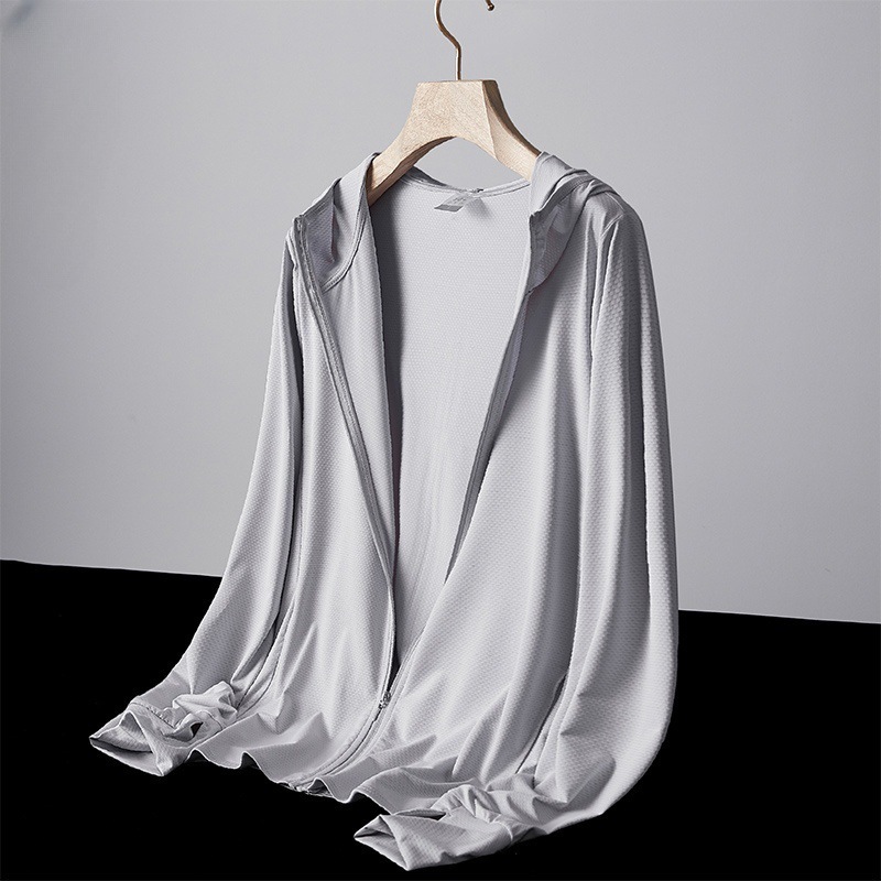 태양 보호 의류 여름 얼음 실크 태양 보호 의류 초박형 후드 짧은 코트 남성용 자외선 방지 통기성 속건 낚시 의류