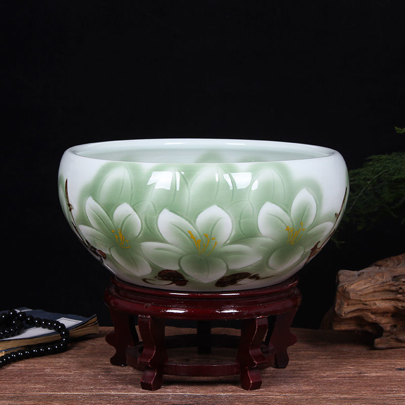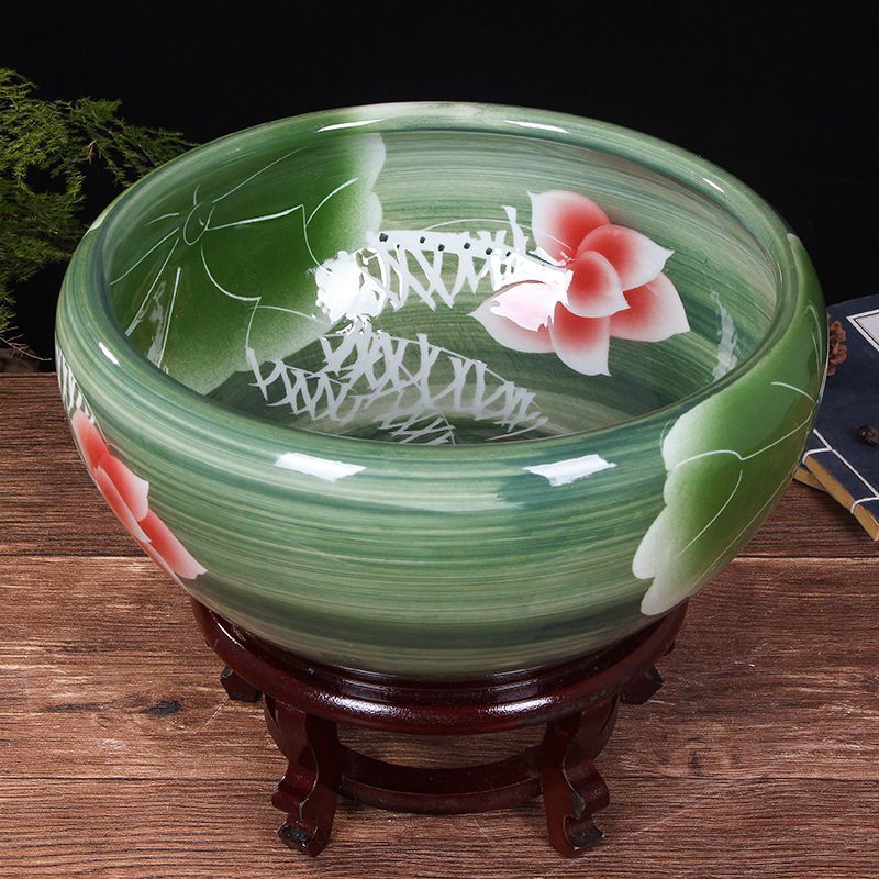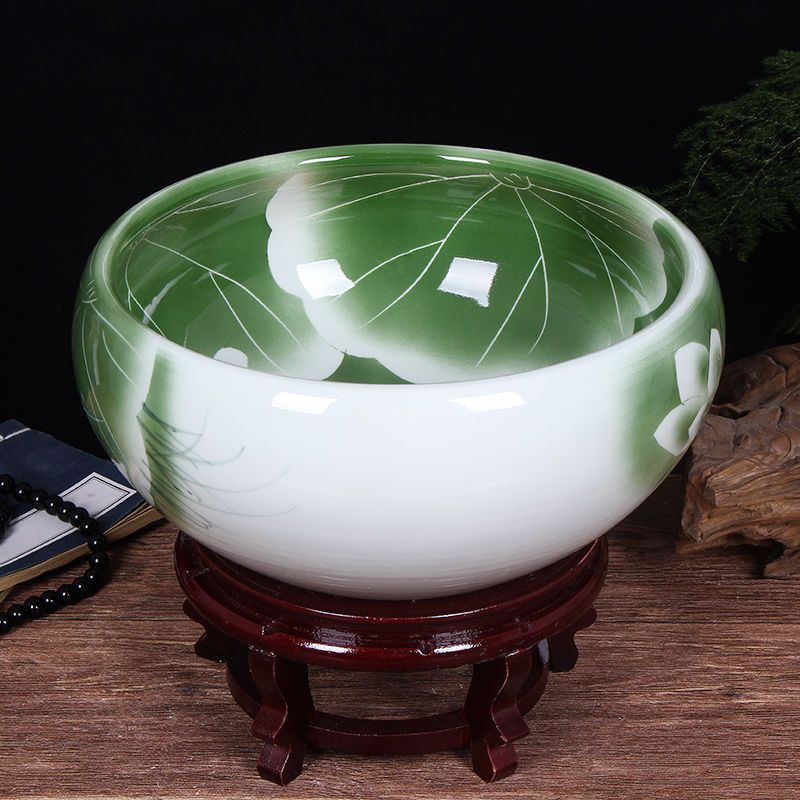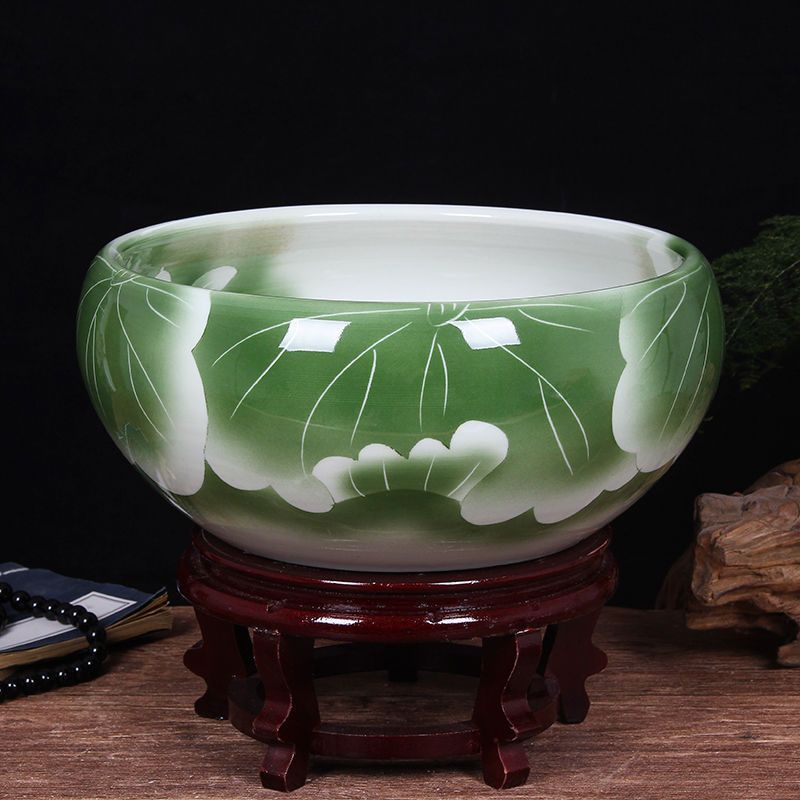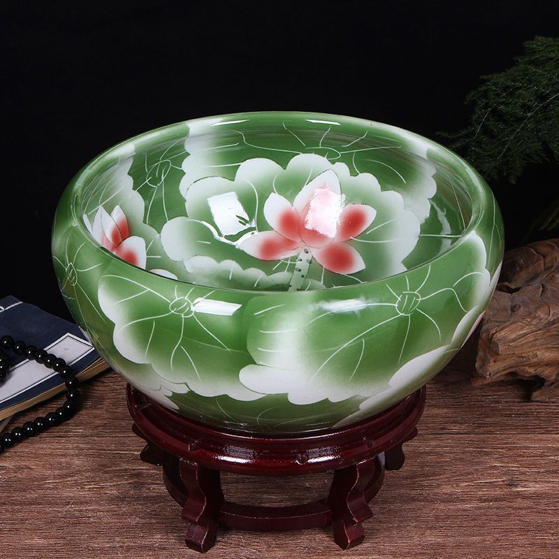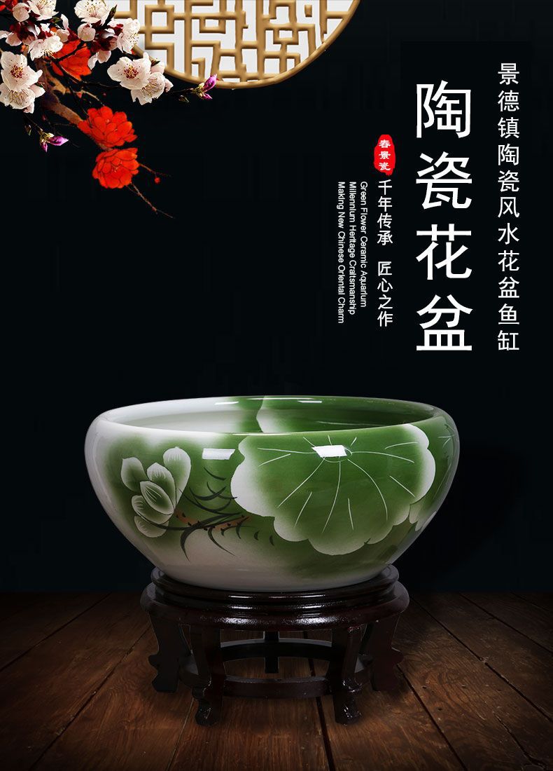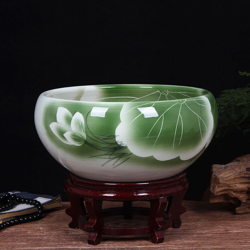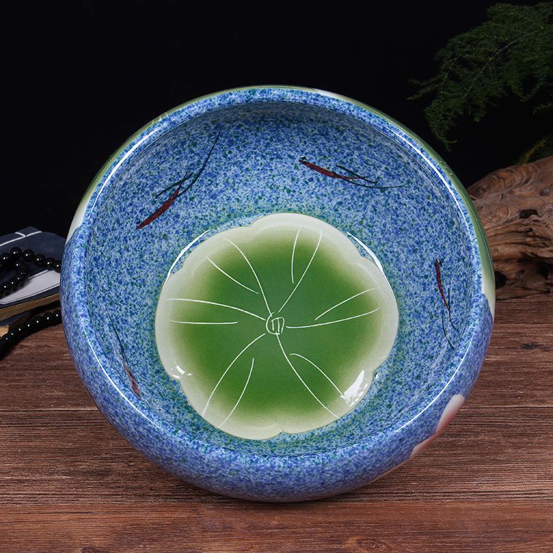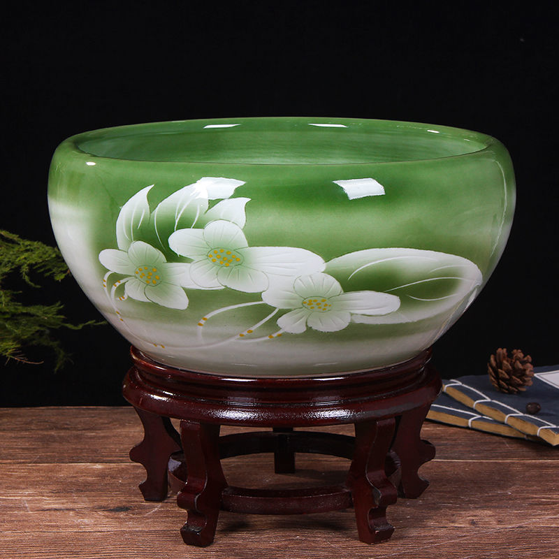 Jingdezhen 세라믹 꽃 냄비 수경 그릇 연꽃 냄비 물 백합 구리 돈 잔디 녹색 막대 살찐 꽃 냄비 거실 장식품 금붕어 탱크