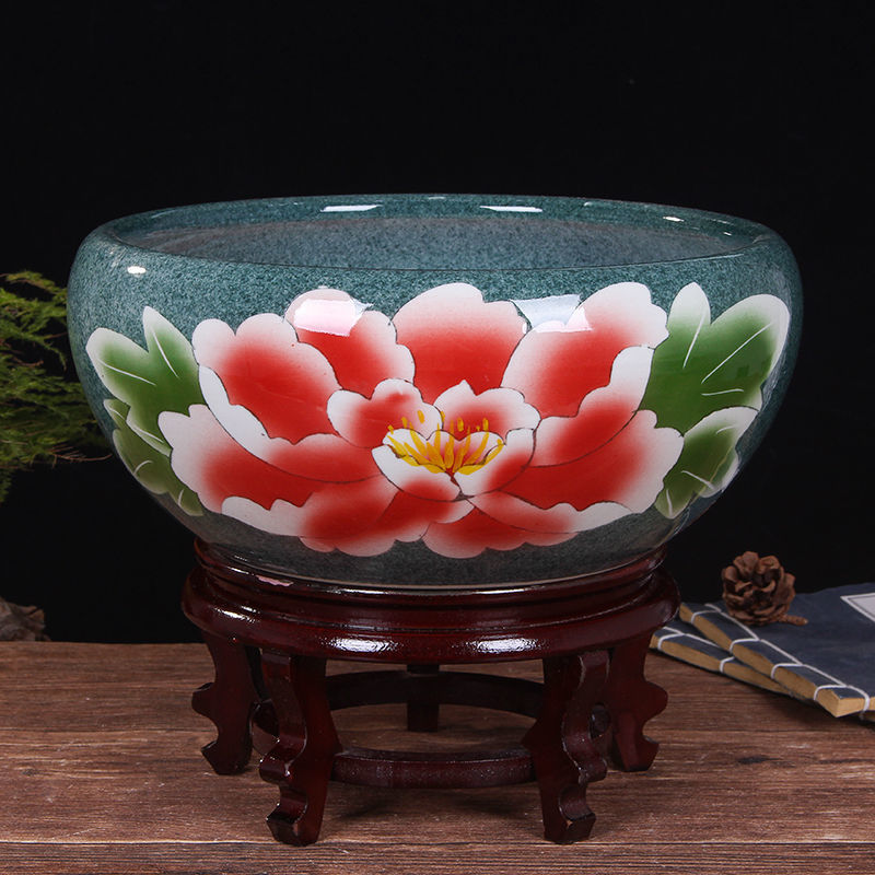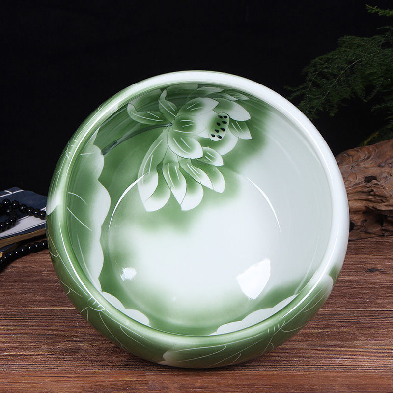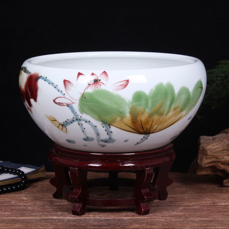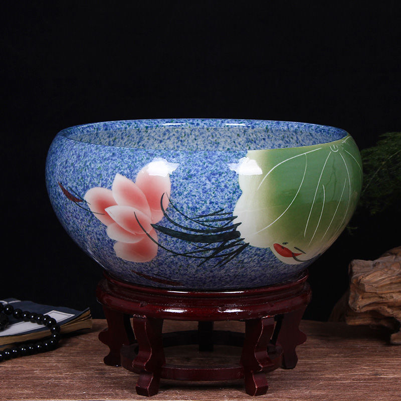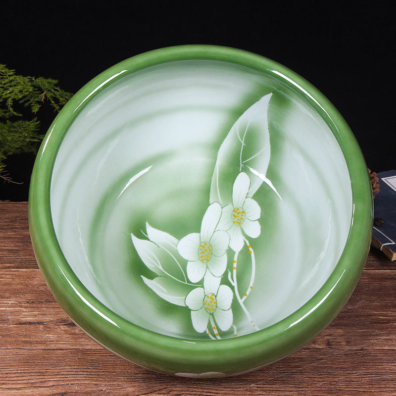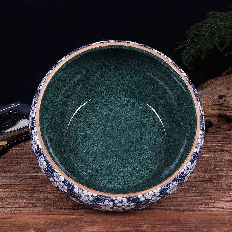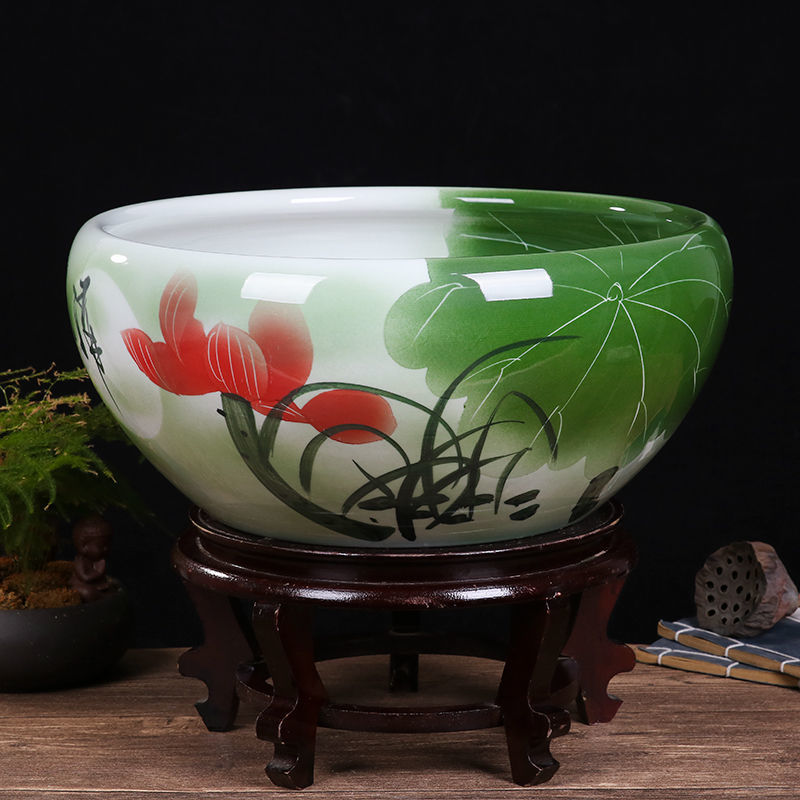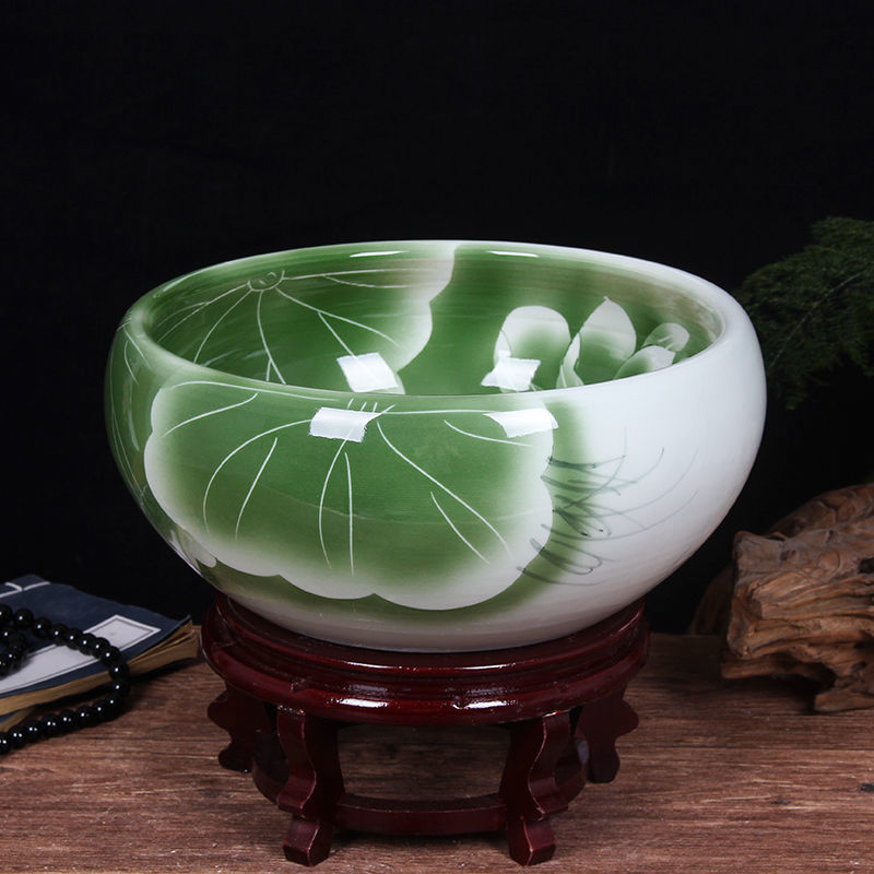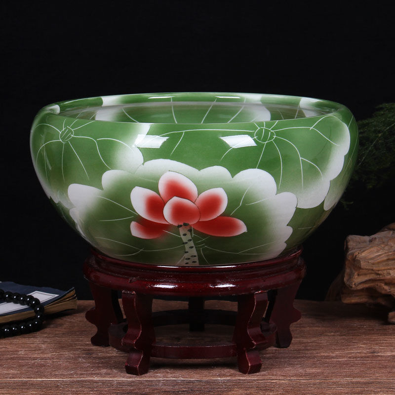 Jingdezhen 세라믹 꽃 냄비 수경 그릇 연꽃 냄비 물 백합 구리 돈 잔디 녹색 막대 살찐 꽃 냄비 거실 장식품 금붕어 탱크