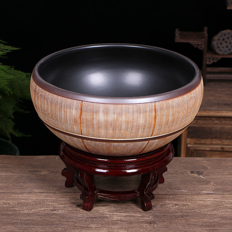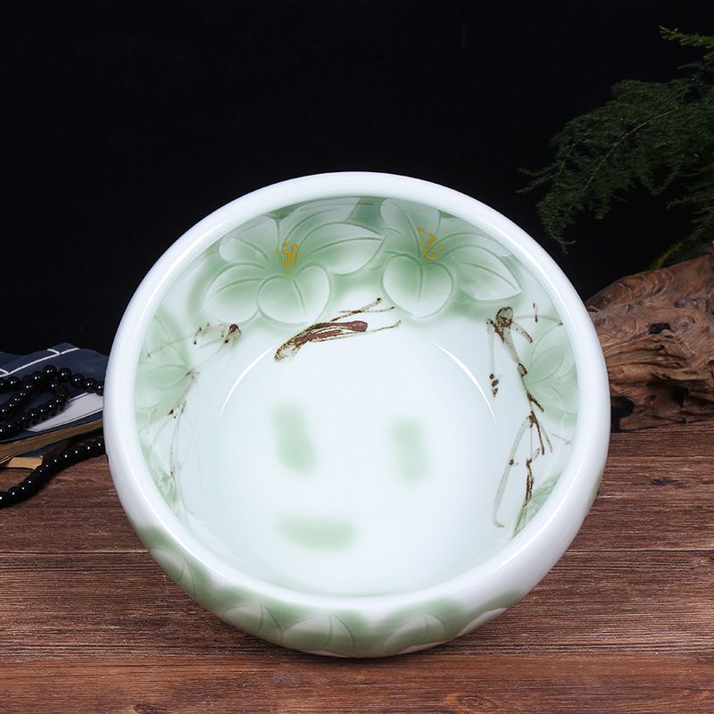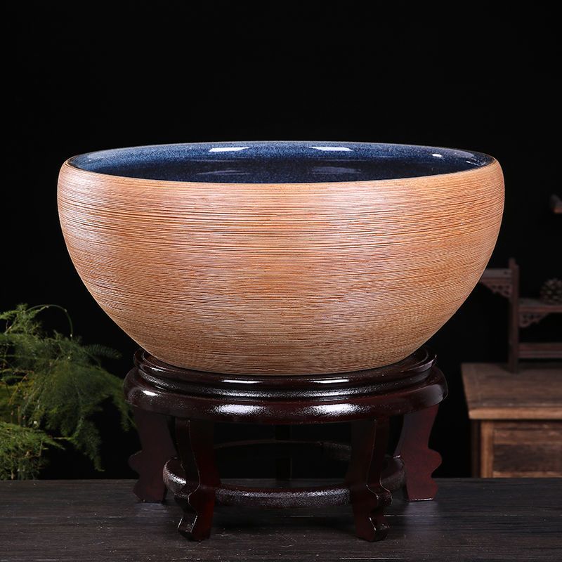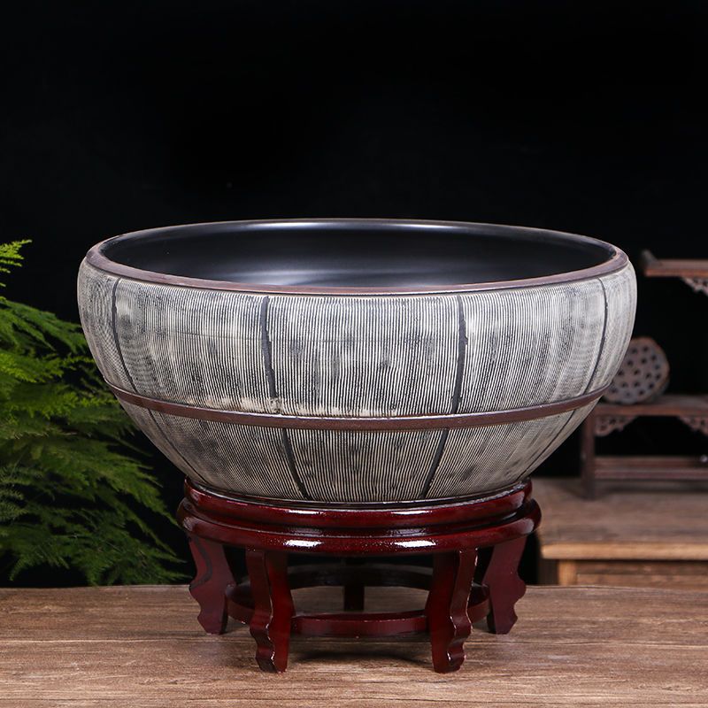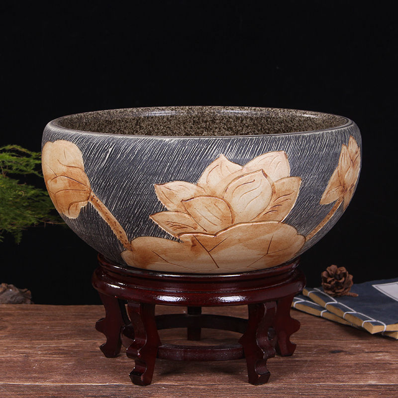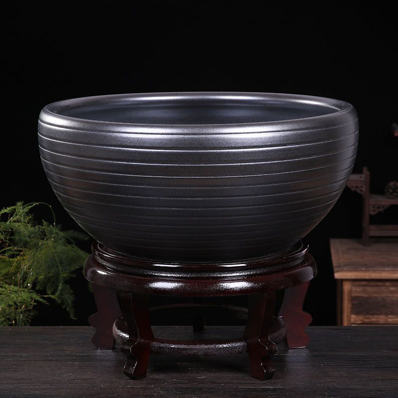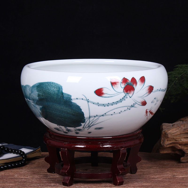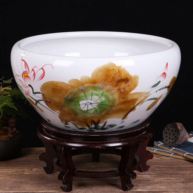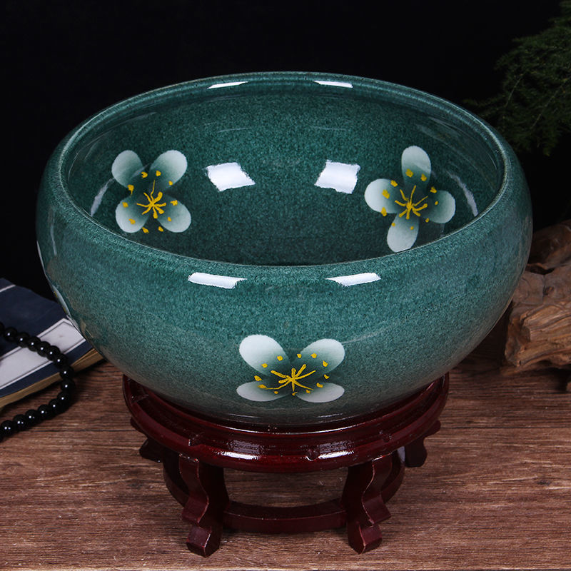 Jingdezhen 세라믹 꽃 냄비 수경 그릇 연꽃 냄비 물 백합 구리 돈 잔디 녹색 막대 살찐 꽃 냄비 거실 장식품 금붕어 탱크