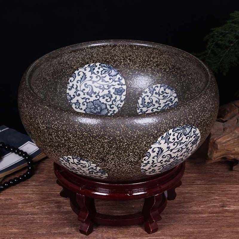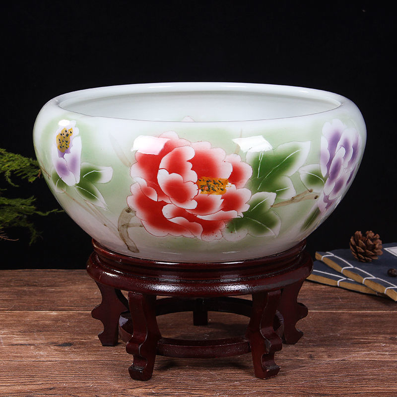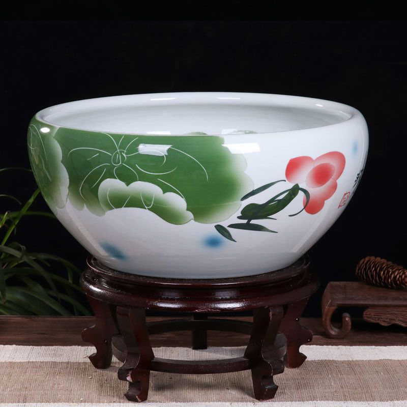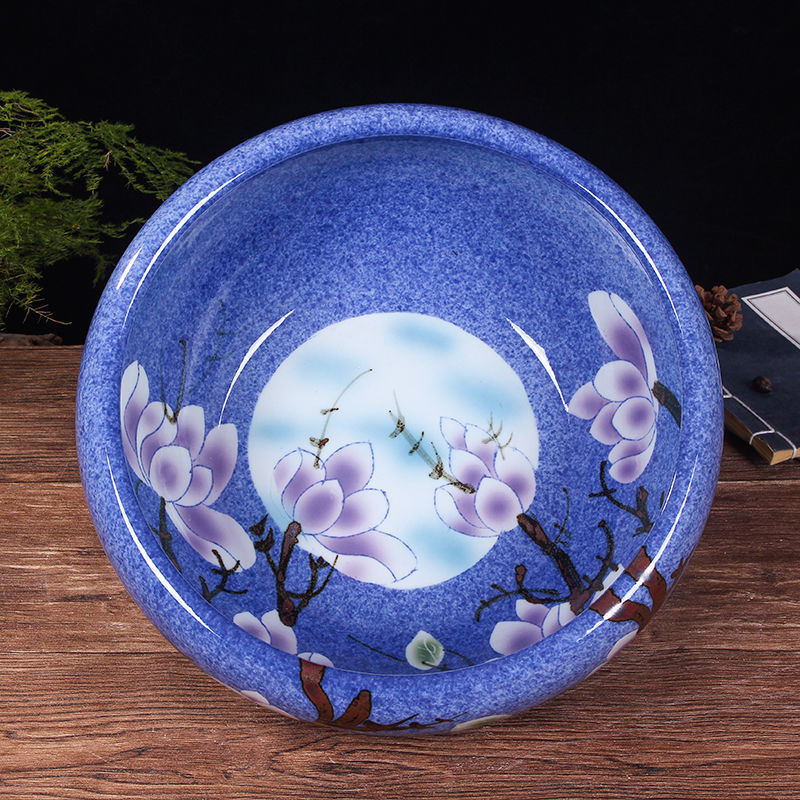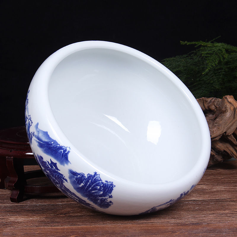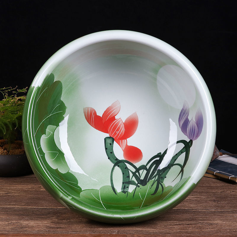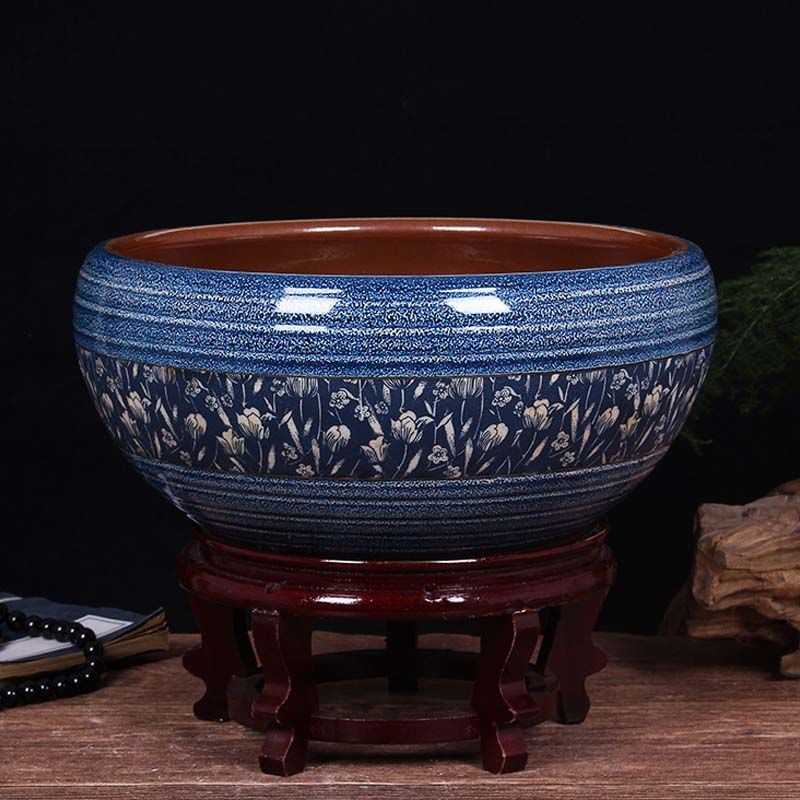 Jingdezhen 세라믹 꽃 냄비 수경 그릇 연꽃 냄비 물 백합 구리 돈 잔디 녹색 막대 살찐 꽃 냄비 거실 장식품 금붕어 탱크스토어 가기