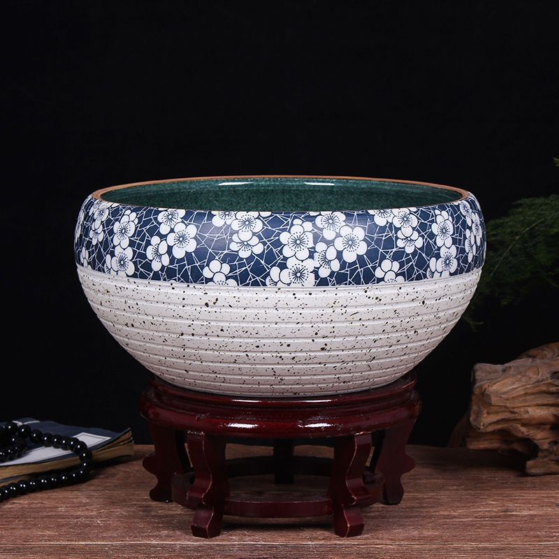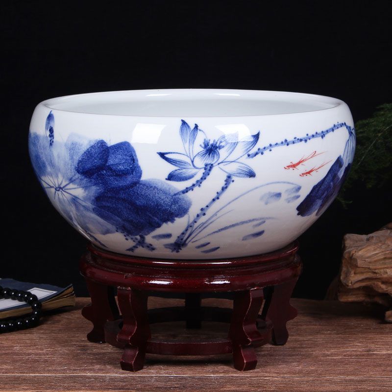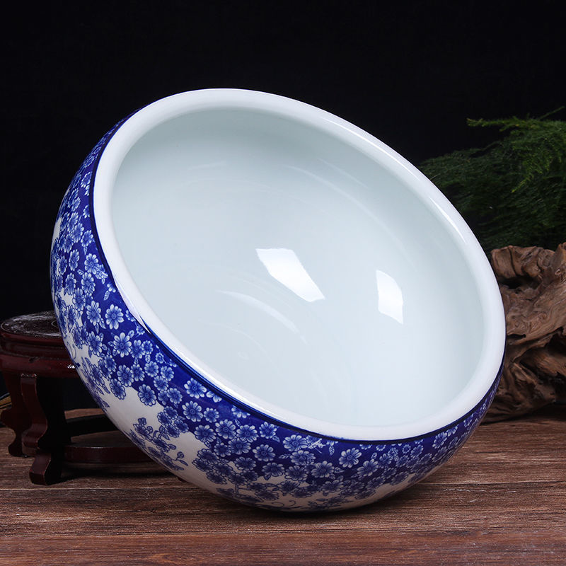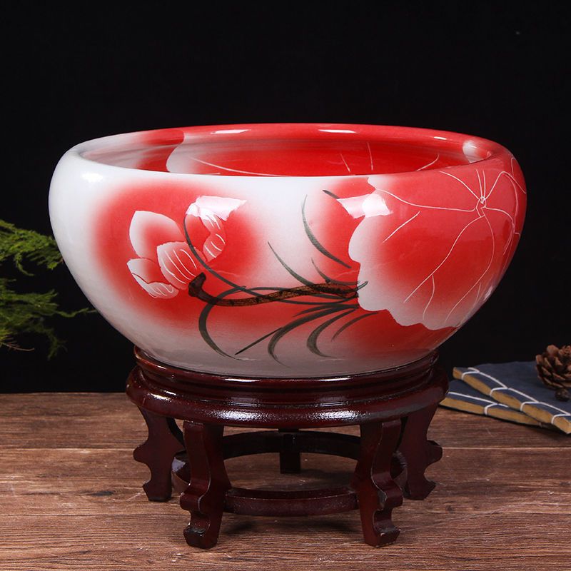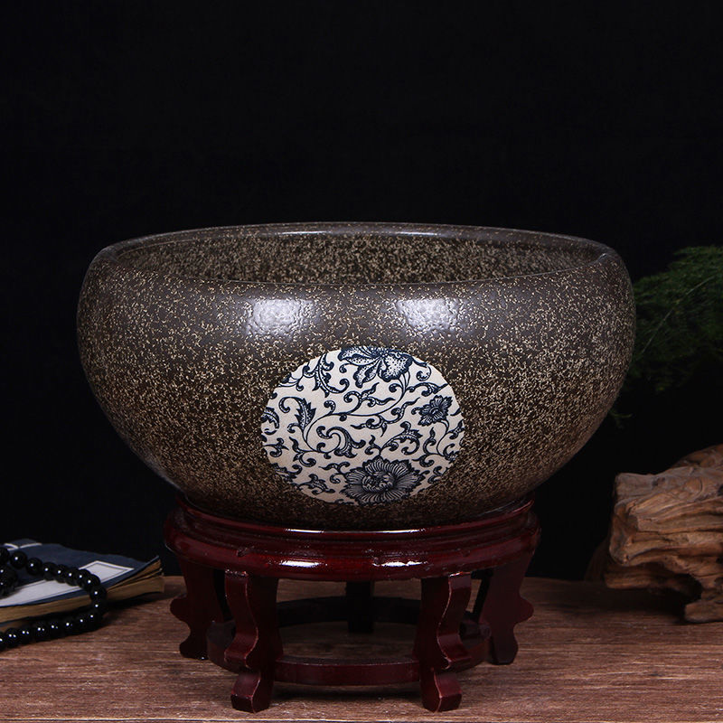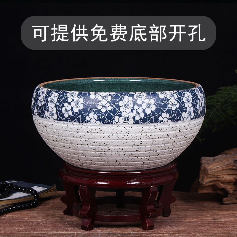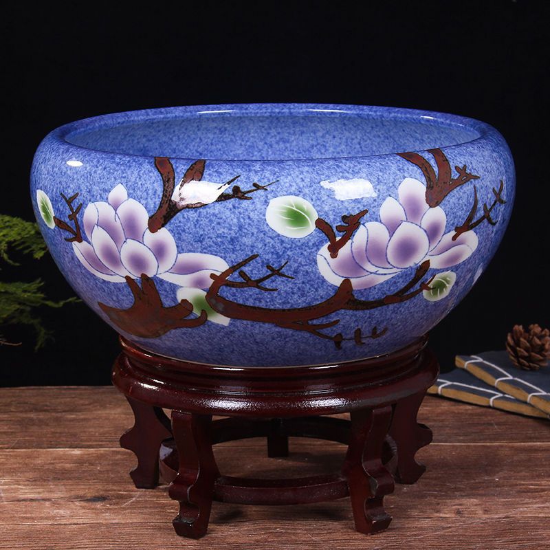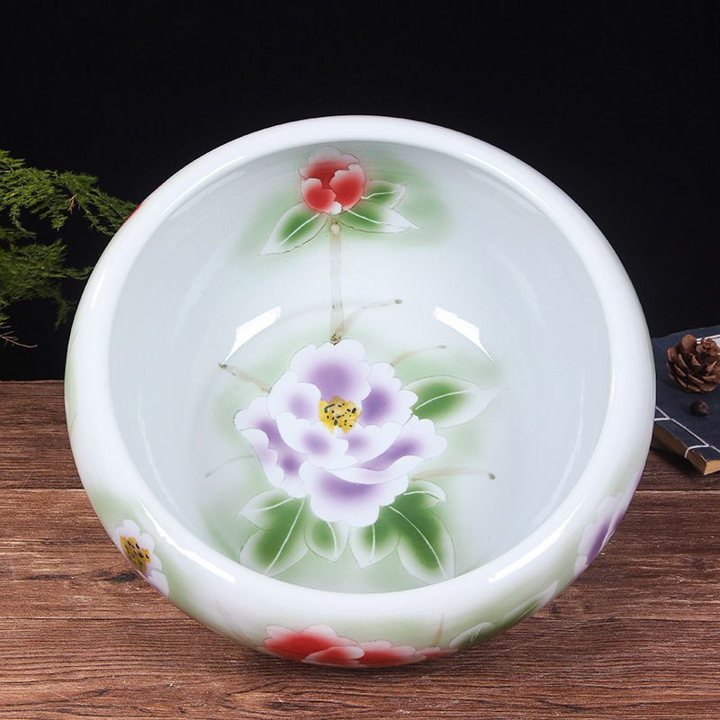 Jingdezhen 세라믹 꽃 냄비 수경 그릇 연꽃 냄비 물 백합 구리 돈 잔디 녹색 막대 살찐 꽃 냄비 거실 장식품 금붕어 탱크스토어 가기