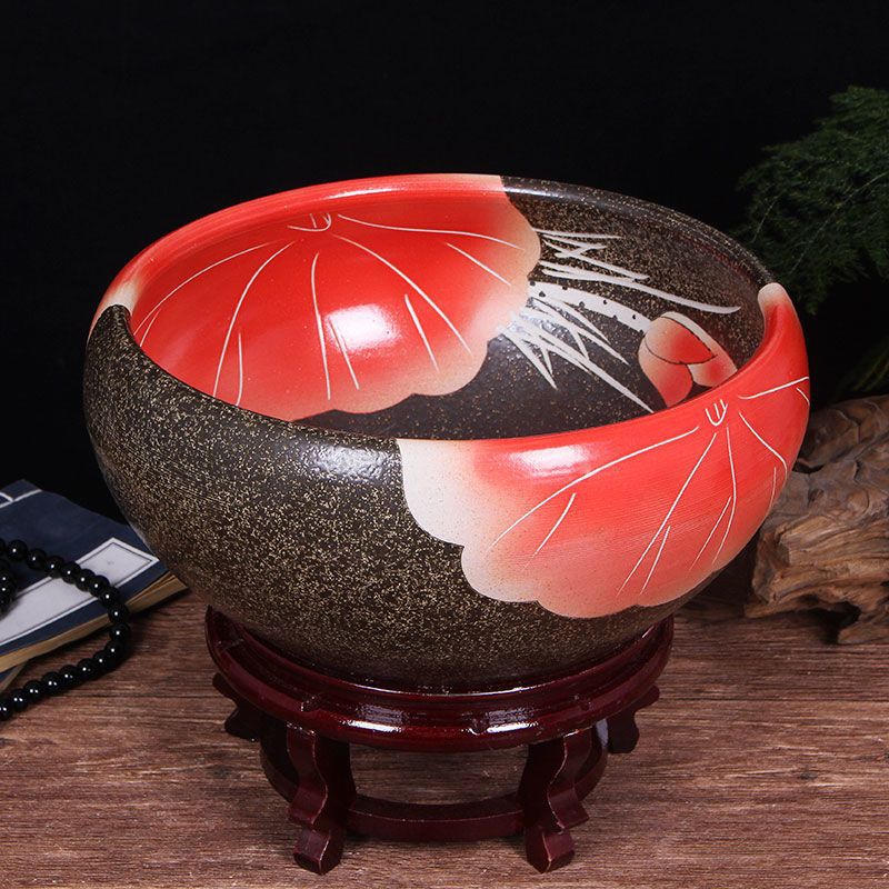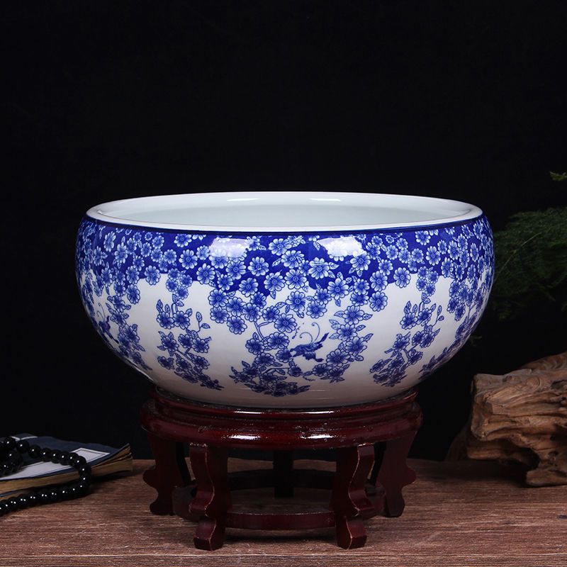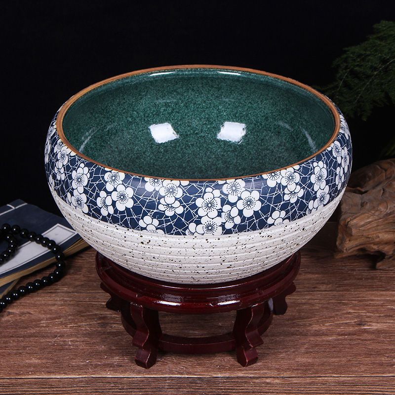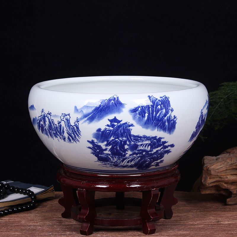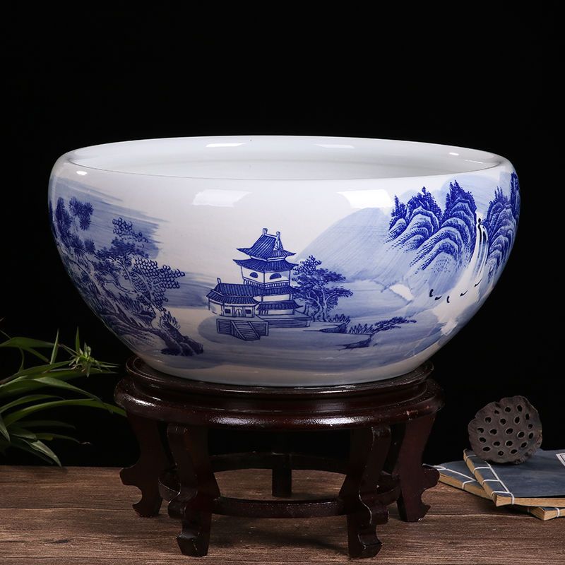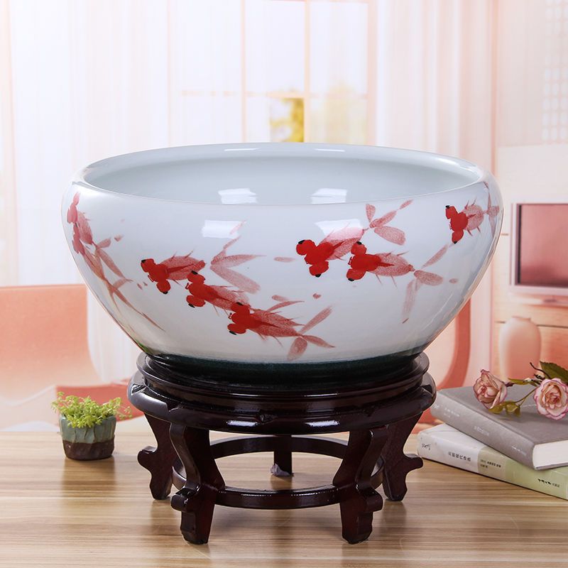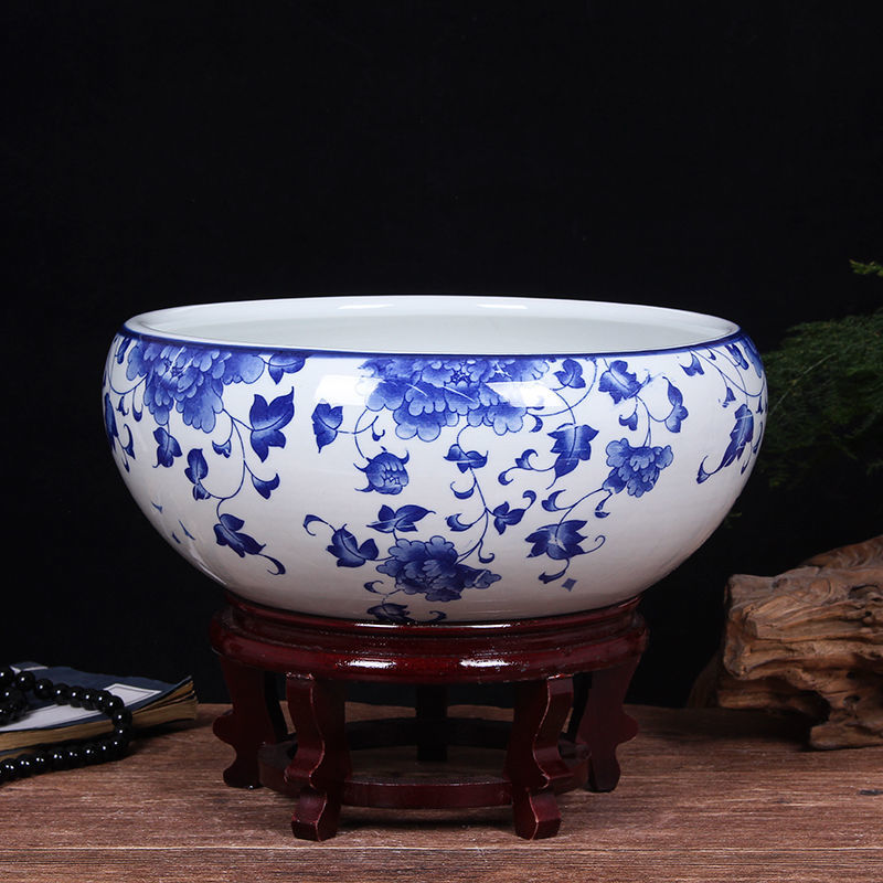 Jingdezhen 세라믹 꽃 냄비 수경 그릇 연꽃 냄비 물 백합 구리 돈 잔디 녹색 막대 살찐 꽃 냄비 거실 장식품 금붕어 탱크스토어 가기