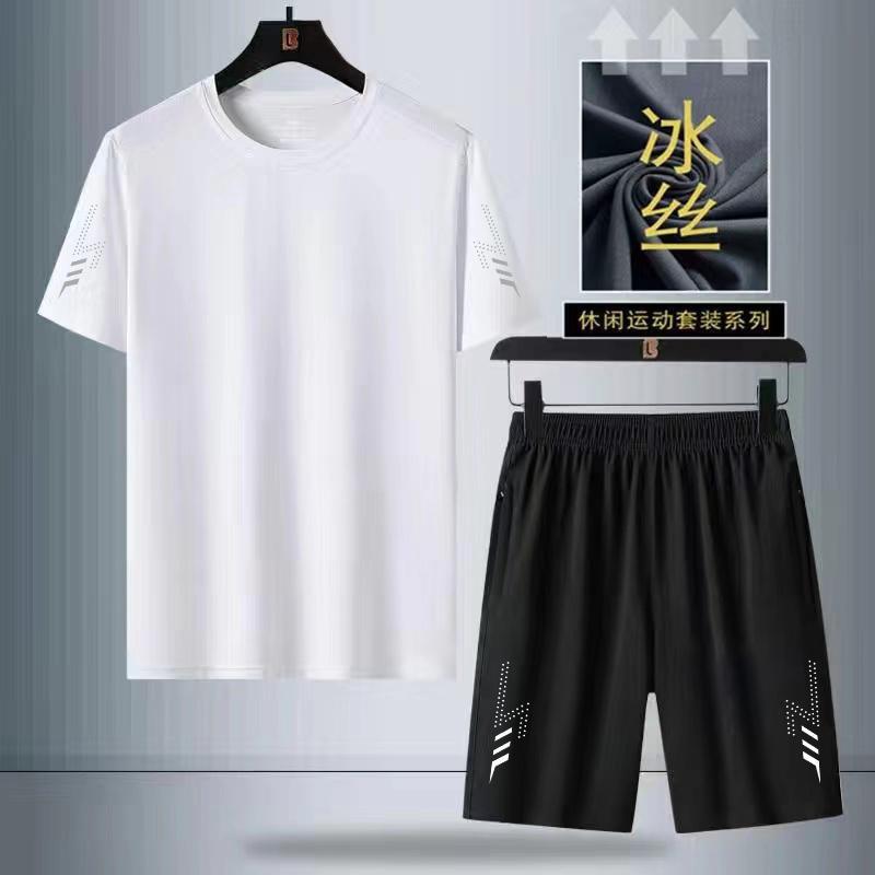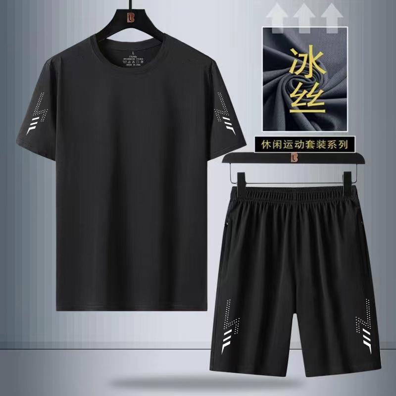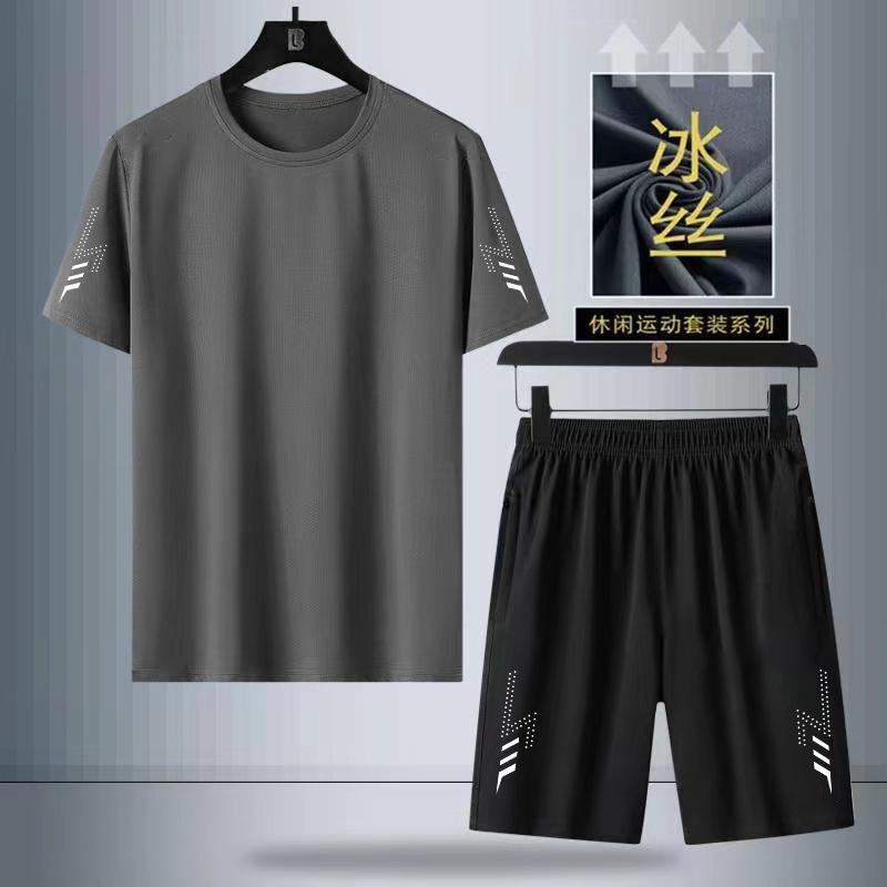 남성용 여름 얇은 스포츠 슈트, 반바지, 속건성 아이스 실크 통기성 반팔 티셔츠, 캐주얼 투피스스토어 가기