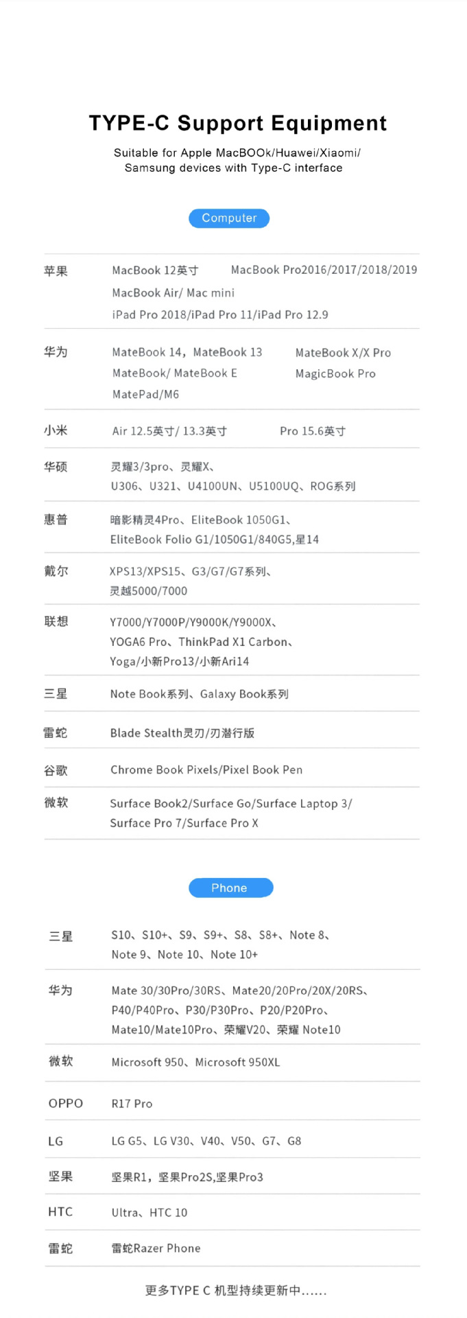 2. 购买前,请联系卖家确认 Hub 是否支持您的 Type-c 设备。