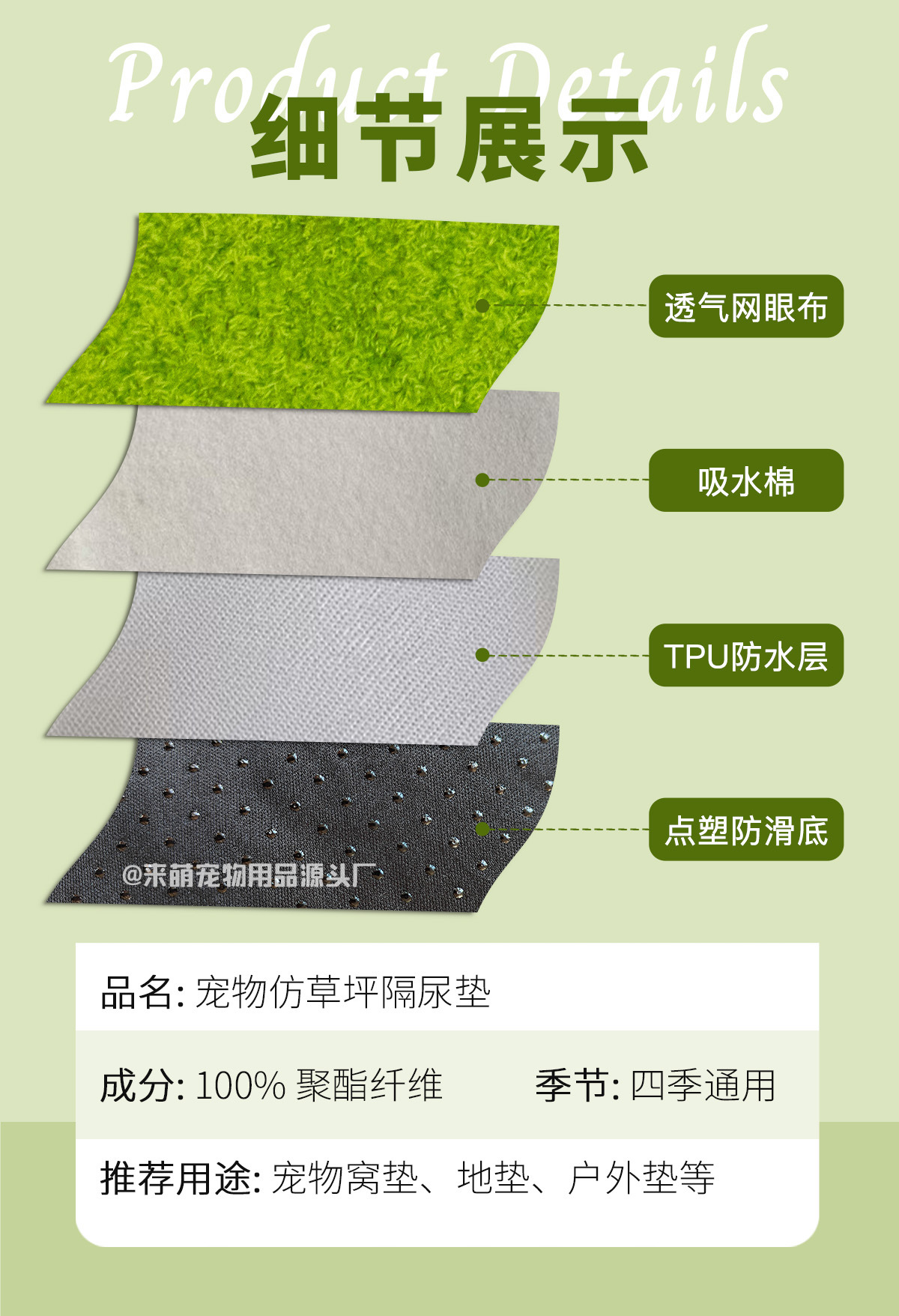 국경 간 세척 가능한 애완 동물 잔디 매트 통기성 물 흡수성 개와 고양이를위한 방수 미끄럼 방지 기저귀