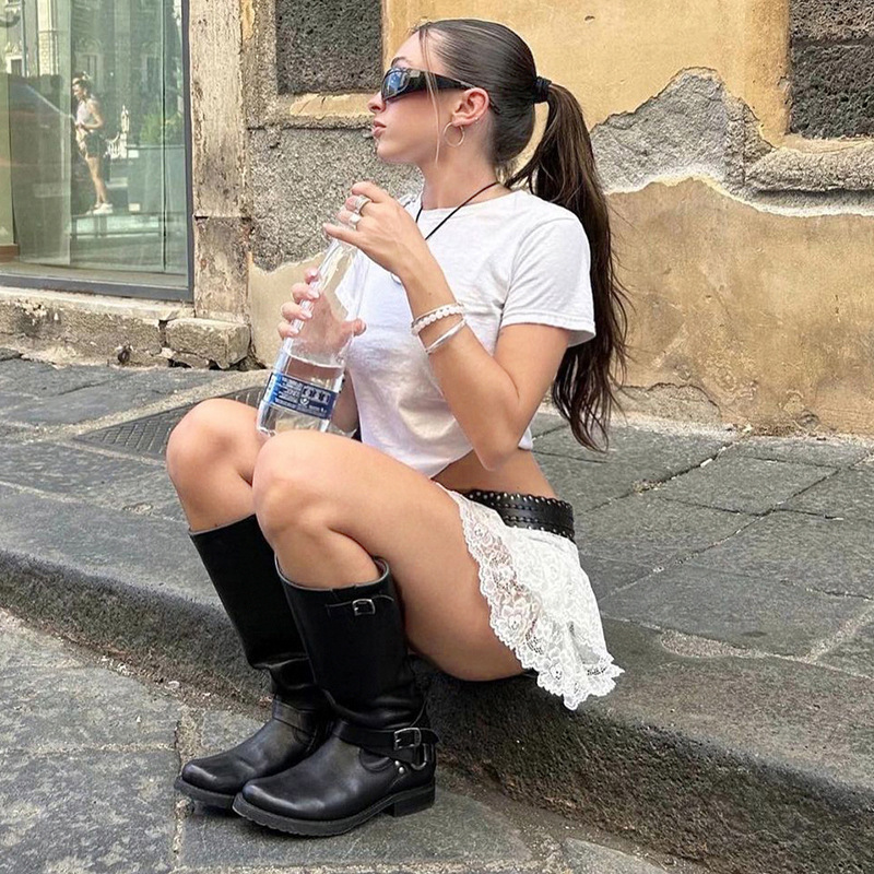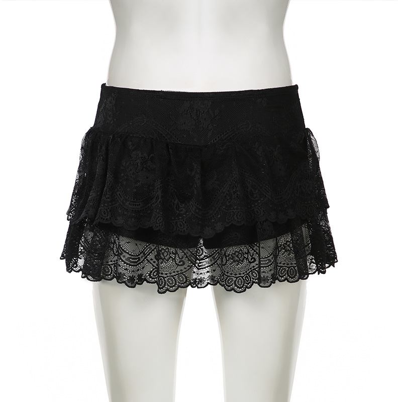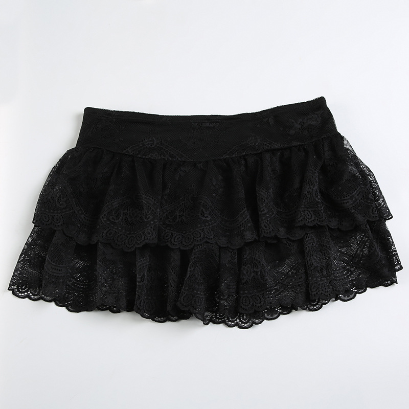 2024 패션 스트리트 스타일 핫 소녀 로우 허리 울트라 짧은 스커트 레이스 스플 라이스 케이크 스커트 A 라인 플리츠 스커트 여성용 스커트