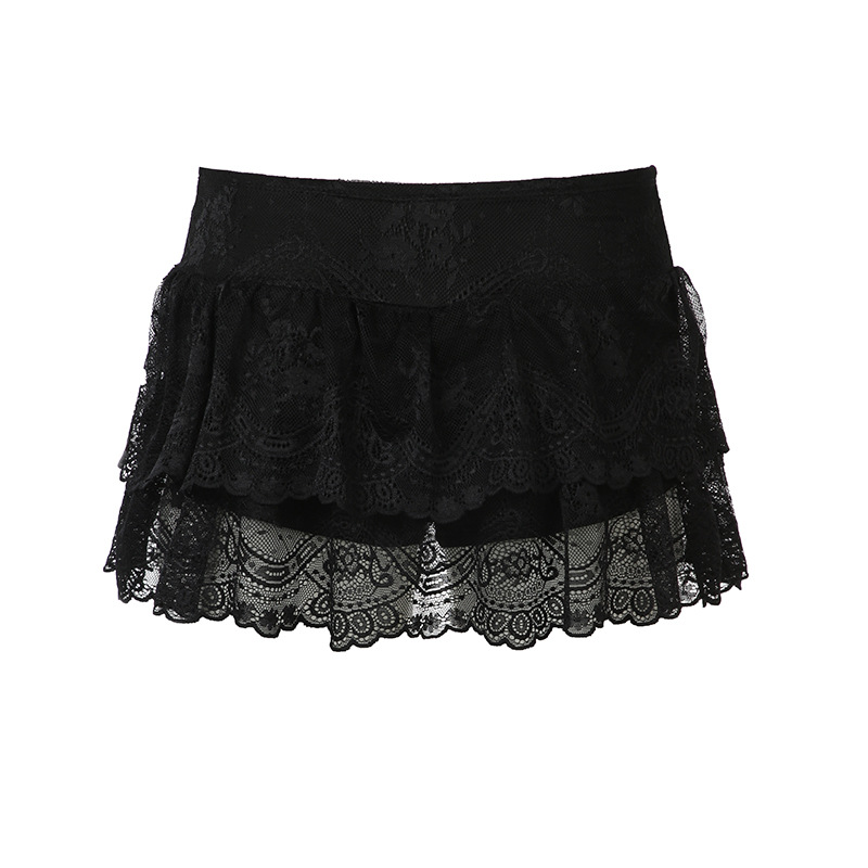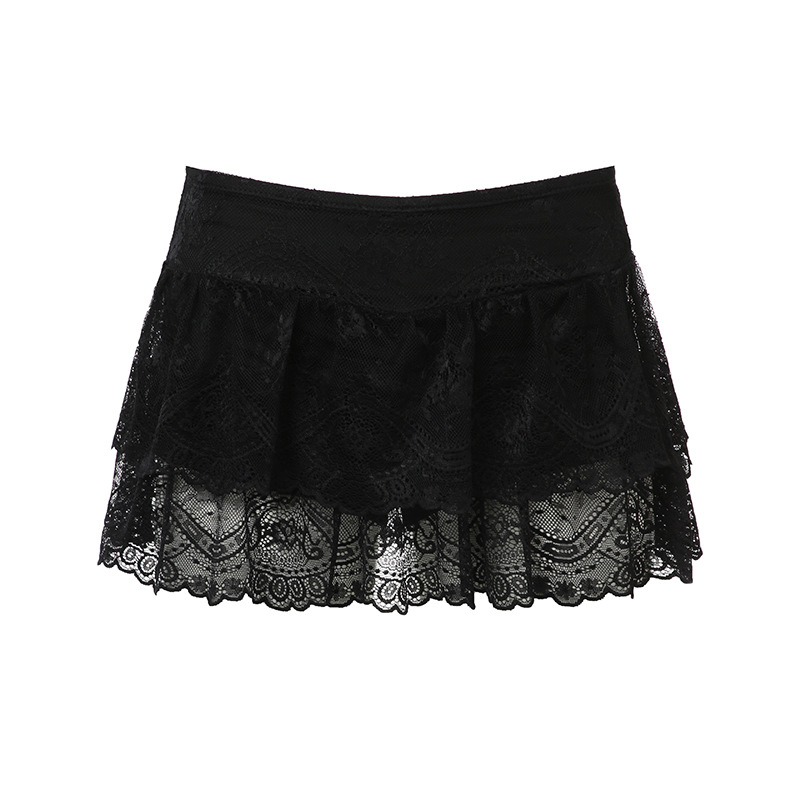 2024 패션 스트리트 스타일 핫 소녀 로우 허리 울트라 짧은 스커트 레이스 스플 라이스 케이크 스커트 A 라인 플리츠 스커트 여성용 스커트스토어 가기