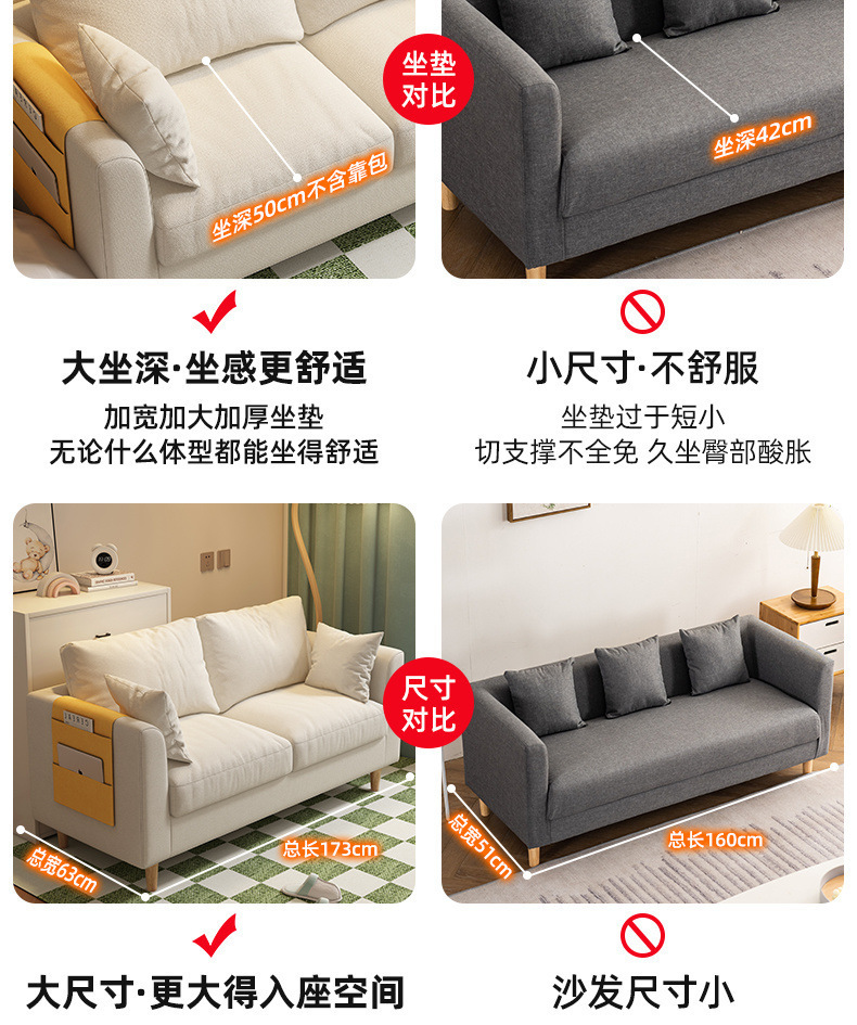 간단한 인터넷 연예인 더블 3 인 소파 작은 아파트 북유럽 간단한 현대 침실 거실 임대 방 패브릭 소파스토어 가기
