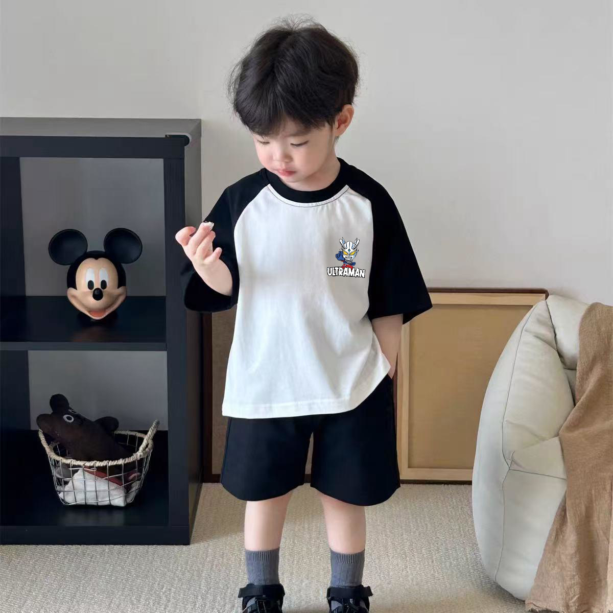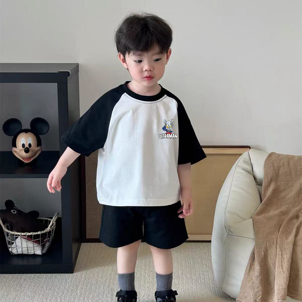 어린이 코튼 반팔 여름 어깨 쿨 잘 생긴 아기 반팔 셔츠 여름 유행 어린이 착용 T 소년 옷