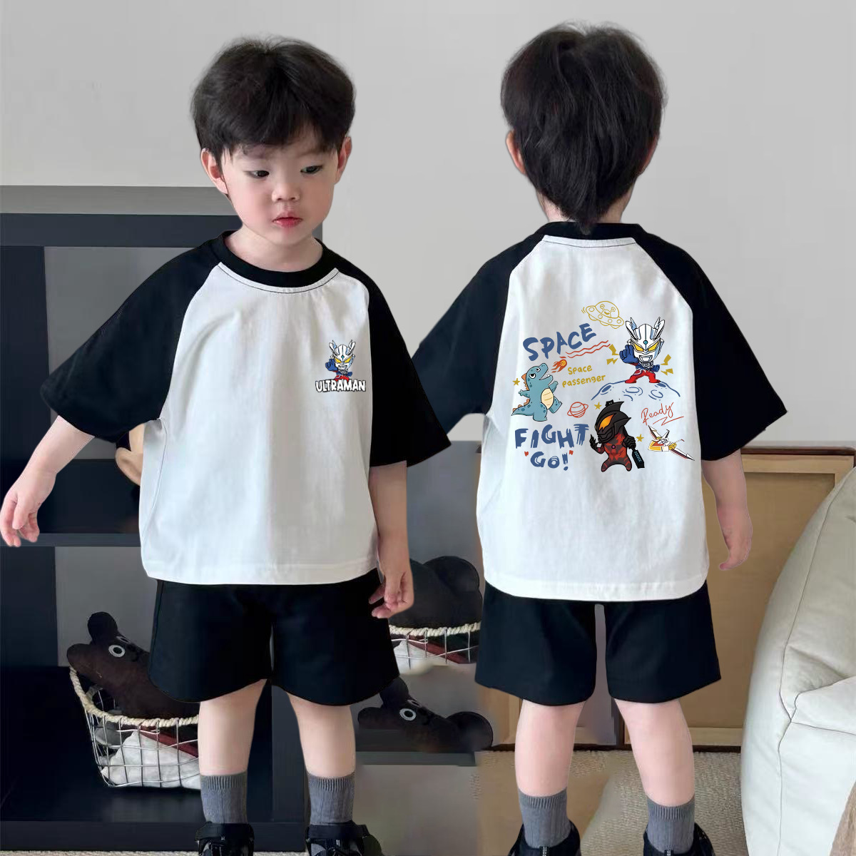 어린이 코튼 반팔 여름 어깨 쿨 잘 생긴 아기 반팔 셔츠 여름 유행 어린이 착용 T 소년 옷스토어 가기