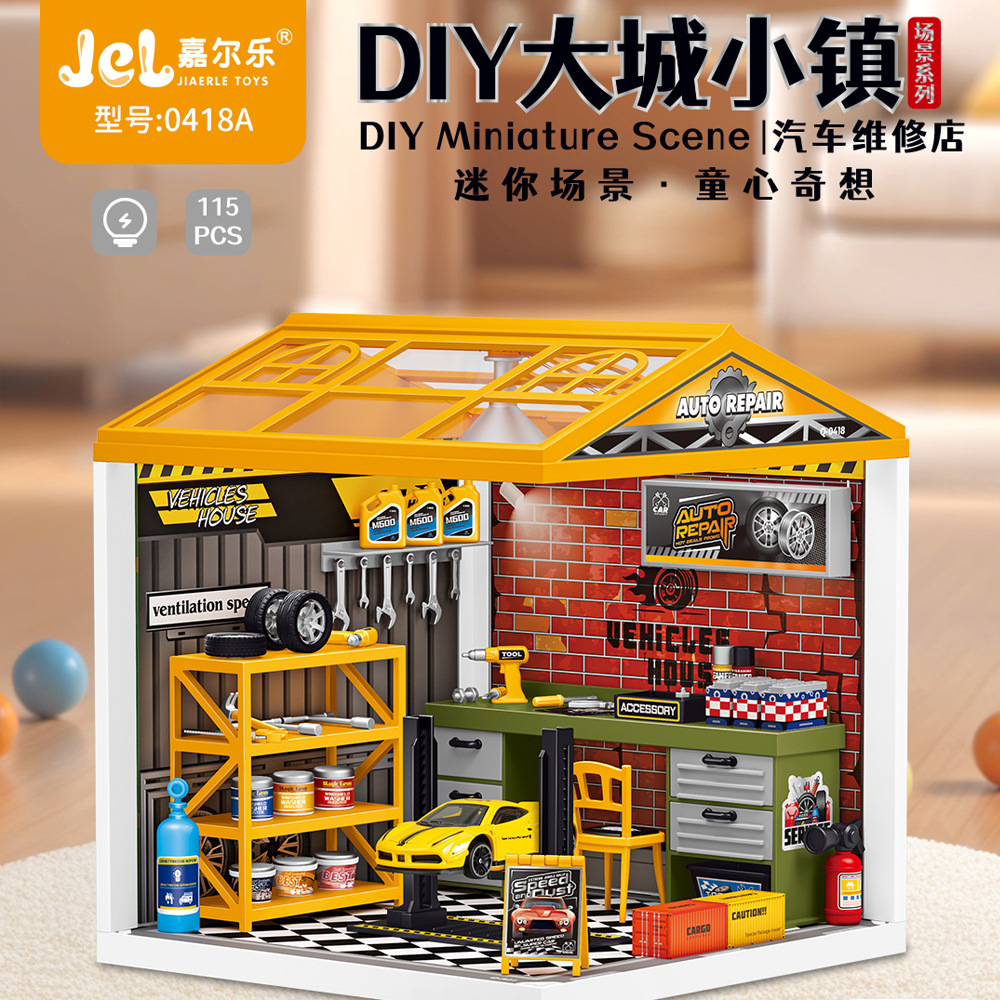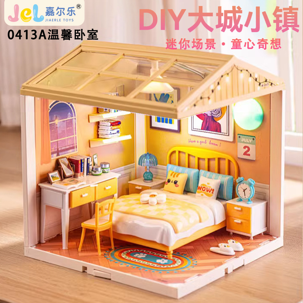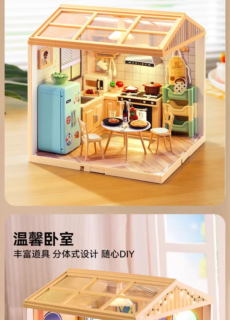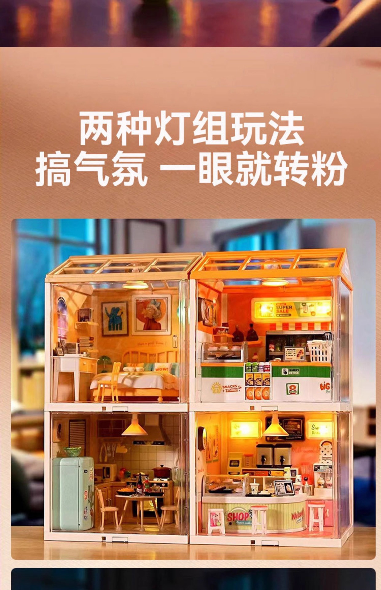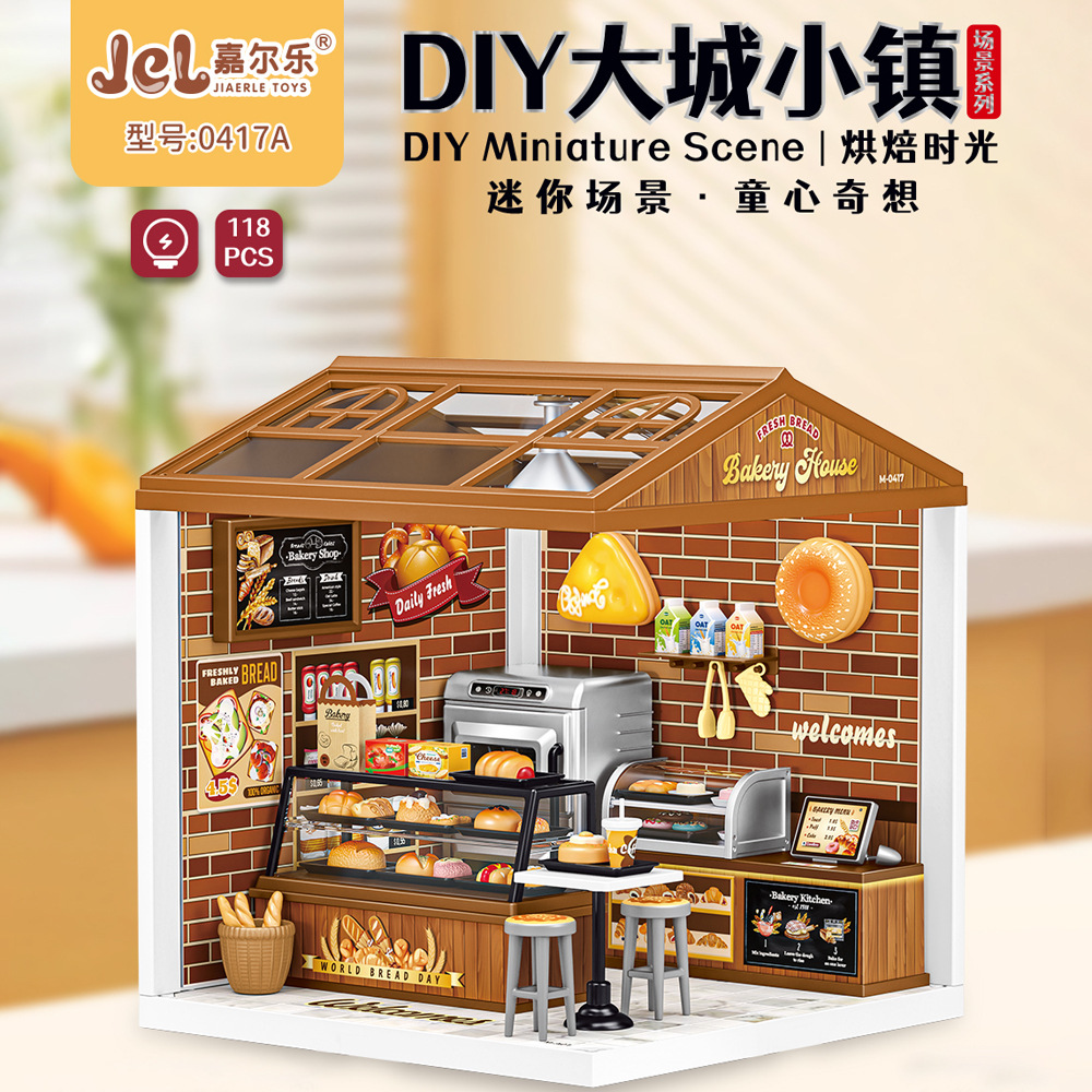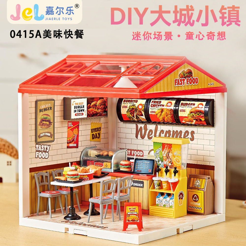 Jiale Big Town 미니 주방 우유 차 가게 DIY 수제 조립 오두막 장면 장난감 소녀