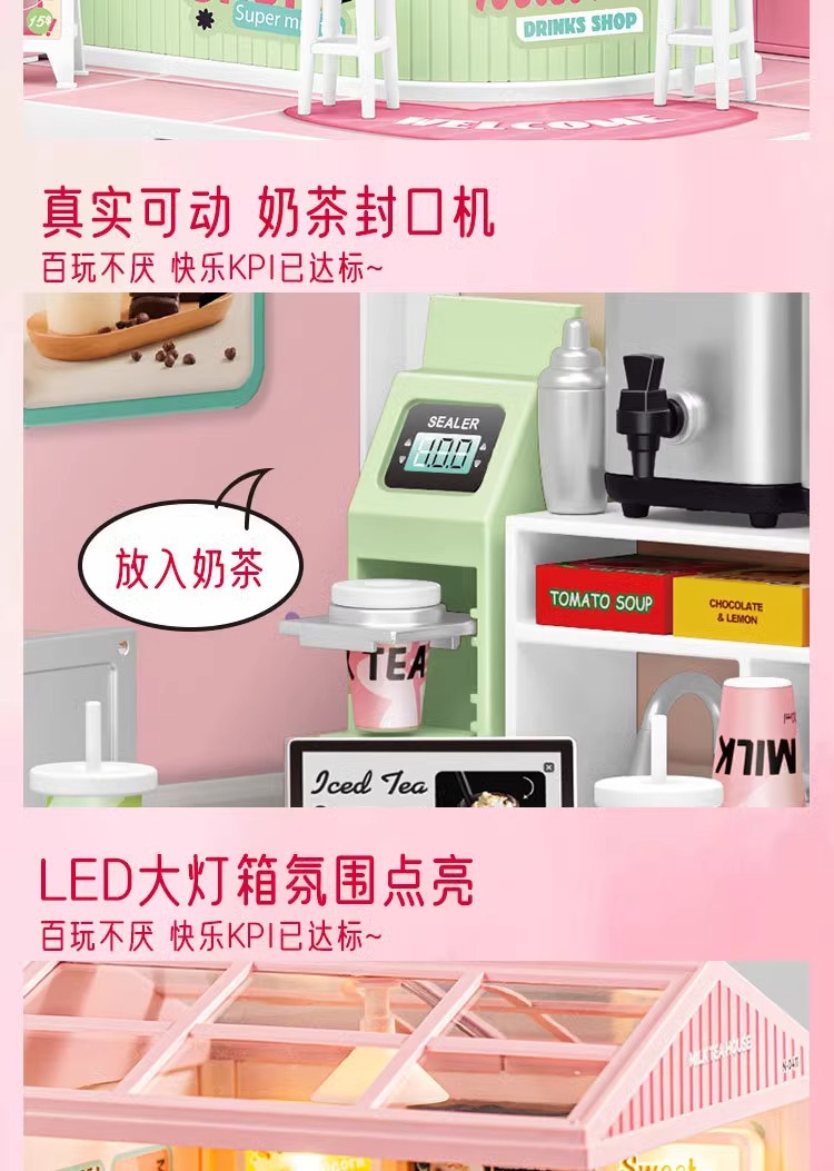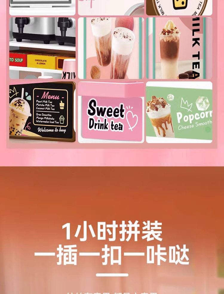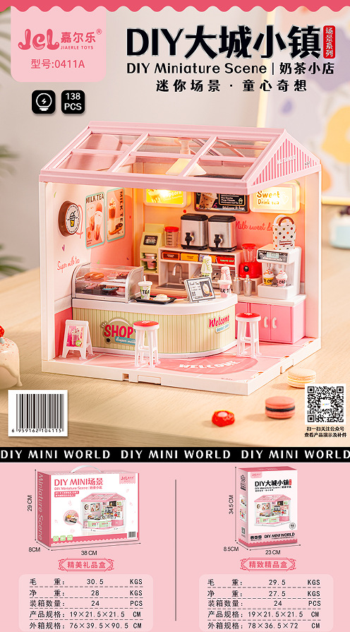 Jiale Big Town 미니 주방 우유 차 가게 DIY 수제 조립 오두막 장면 장난감 소녀스토어 가기