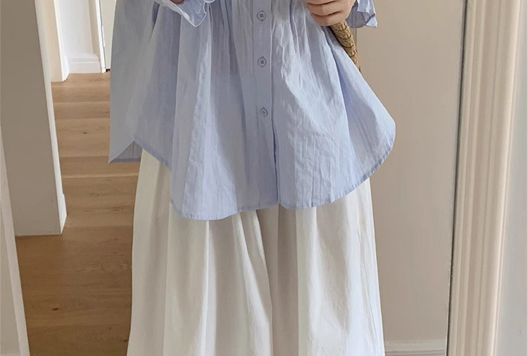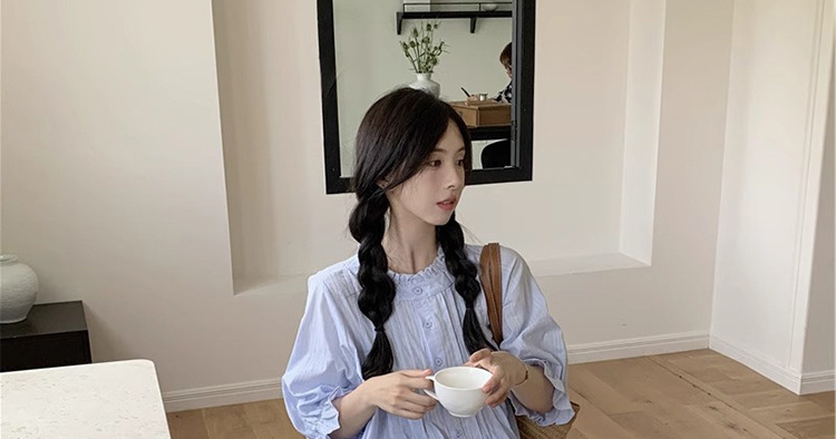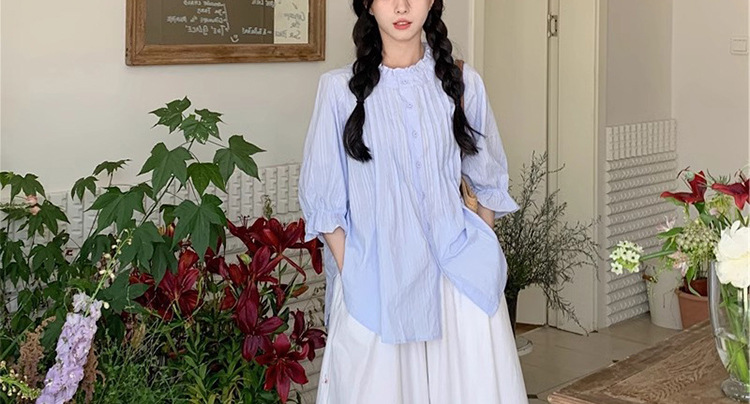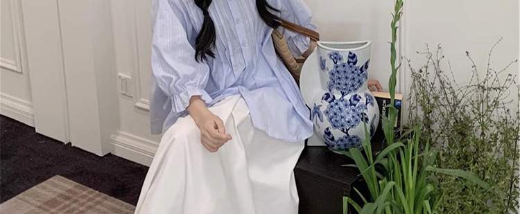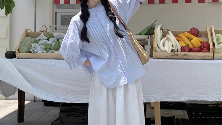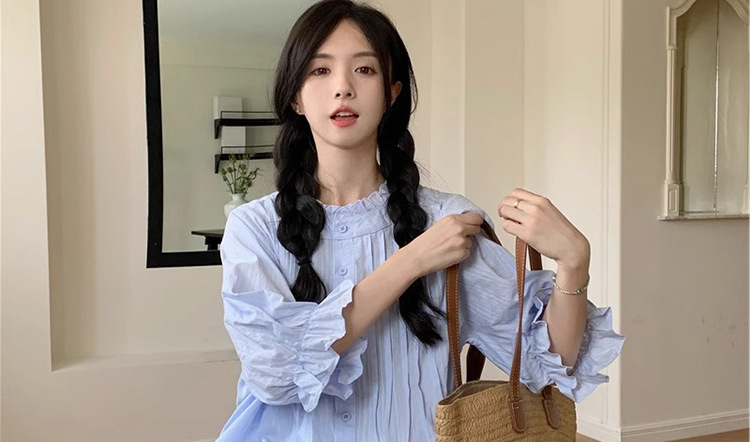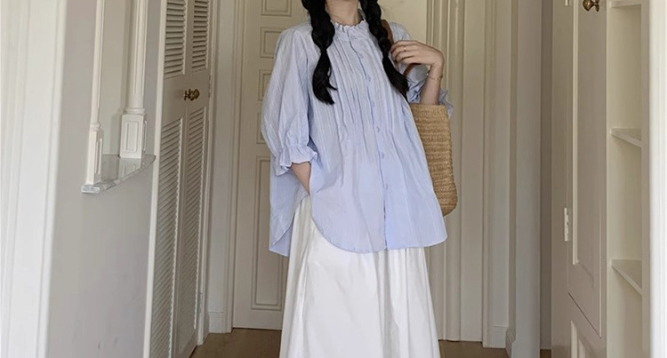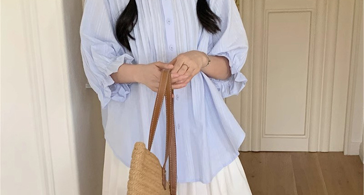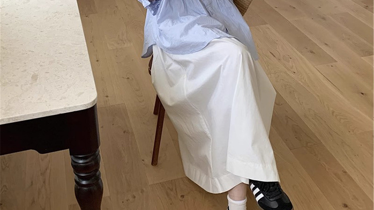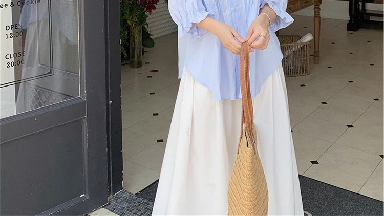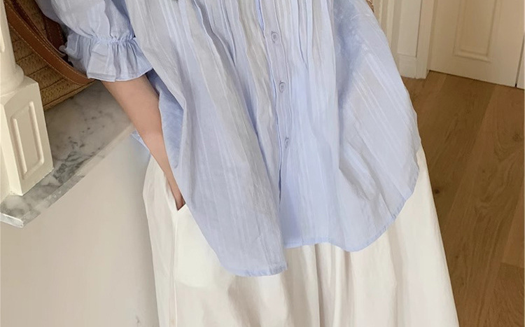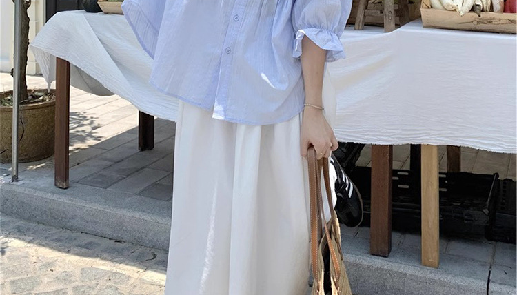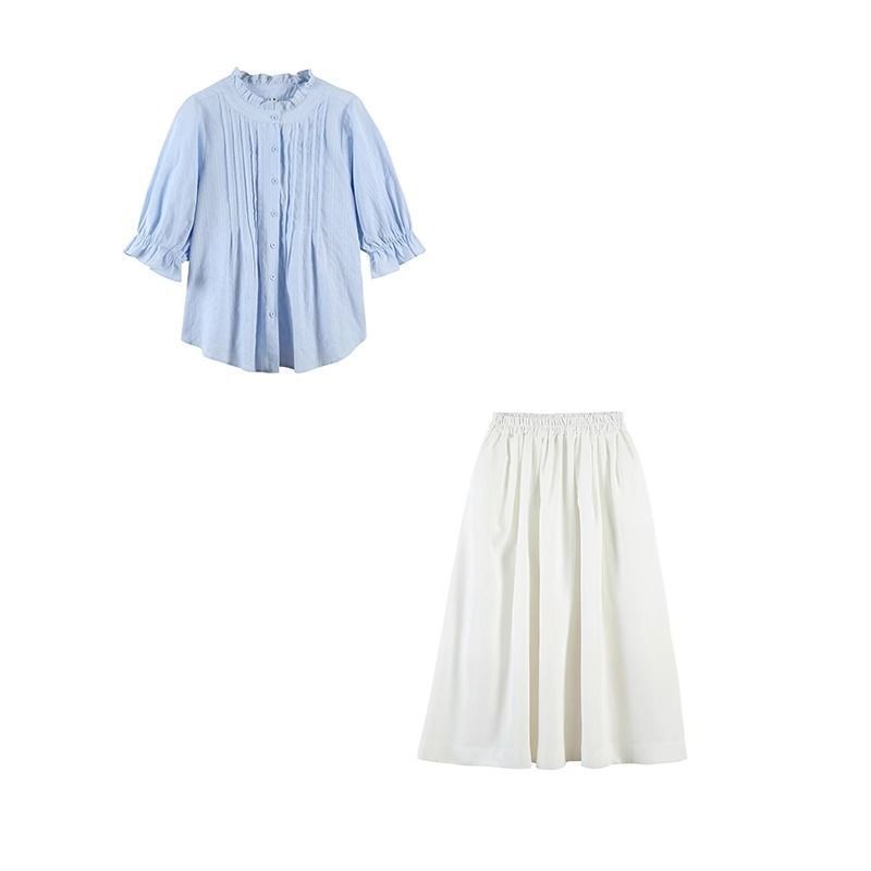 2025 여름 한국식 부드러운 퍼프 소매 느슨한 우아한 블루 셔츠 재킷 스커트 투피스 세트 여성스토어 가기