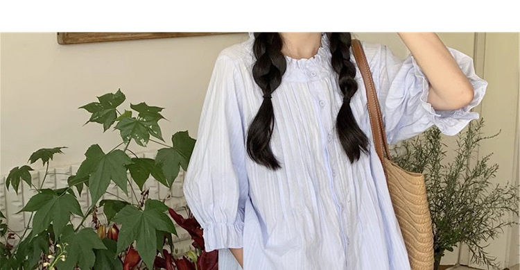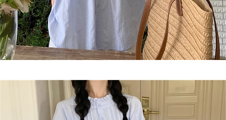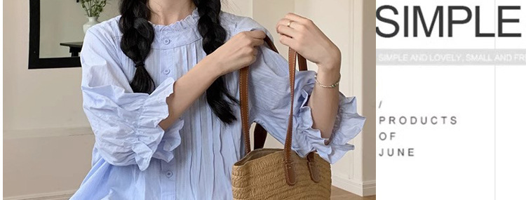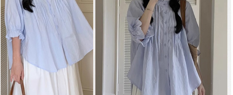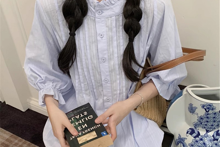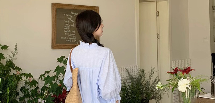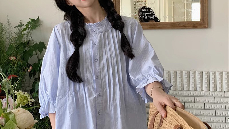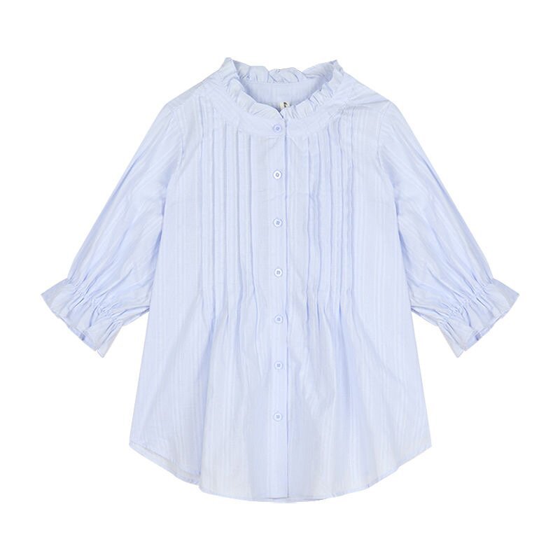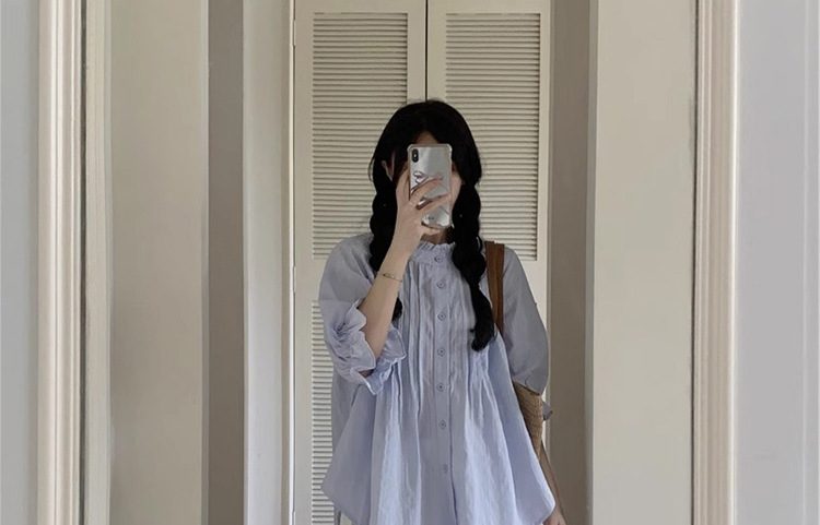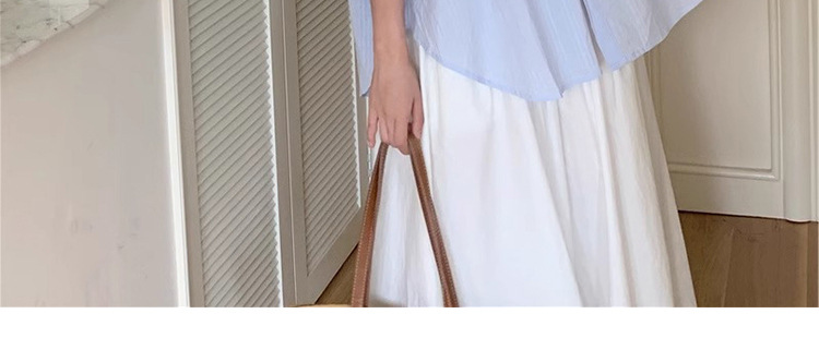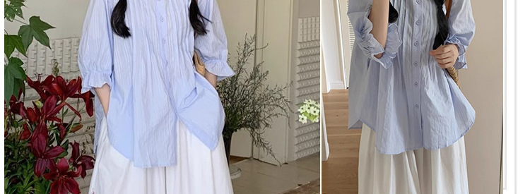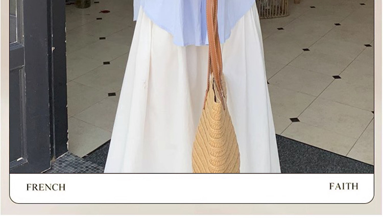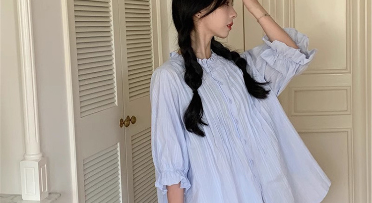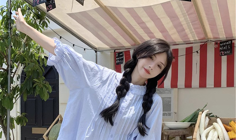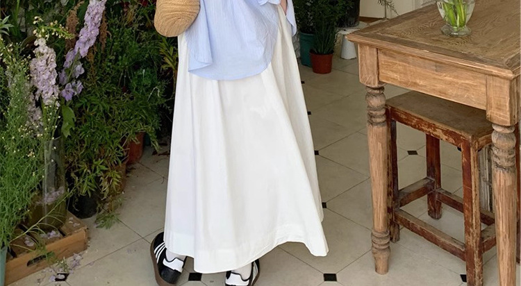 2025 여름 한국식 부드러운 퍼프 소매 느슨한 우아한 블루 셔츠 재킷 스커트 투피스 세트 여성스토어 가기