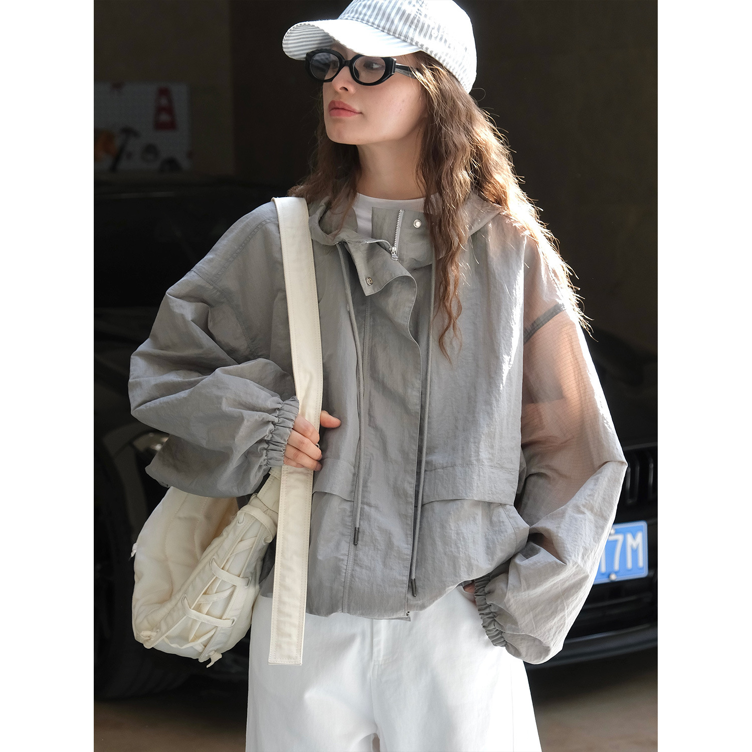 가을 새로운 한국 스타일 야외 스포츠 후드 재킷 편안하고 건조한 느슨한 실루엣 캐주얼 재킷 여성