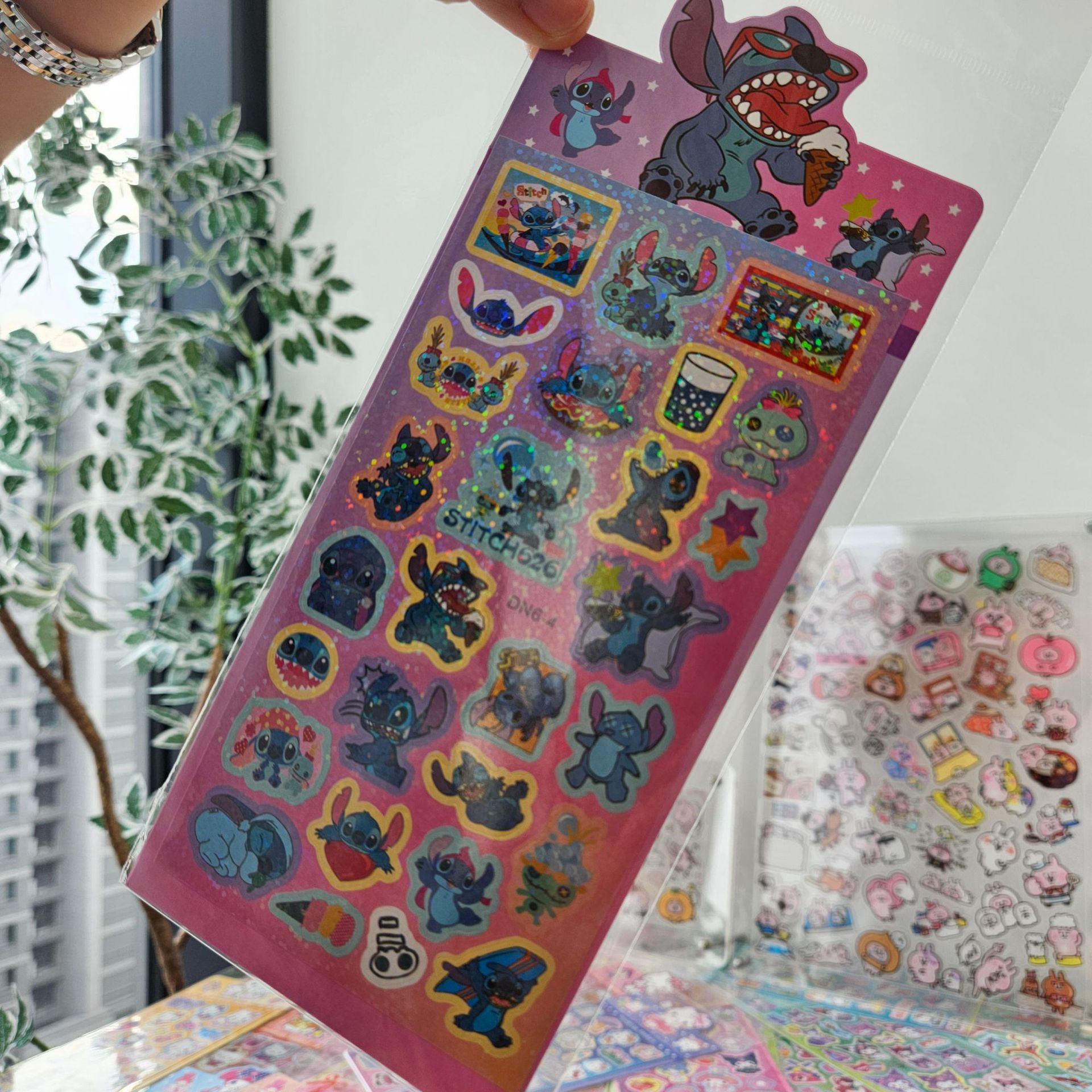 대외 무역 국경 스티치 레이저 구오 카드 스티커 스타 아기 스티치 DIY 휴대 전화 장식 손 계정 스티커스토어 가기
