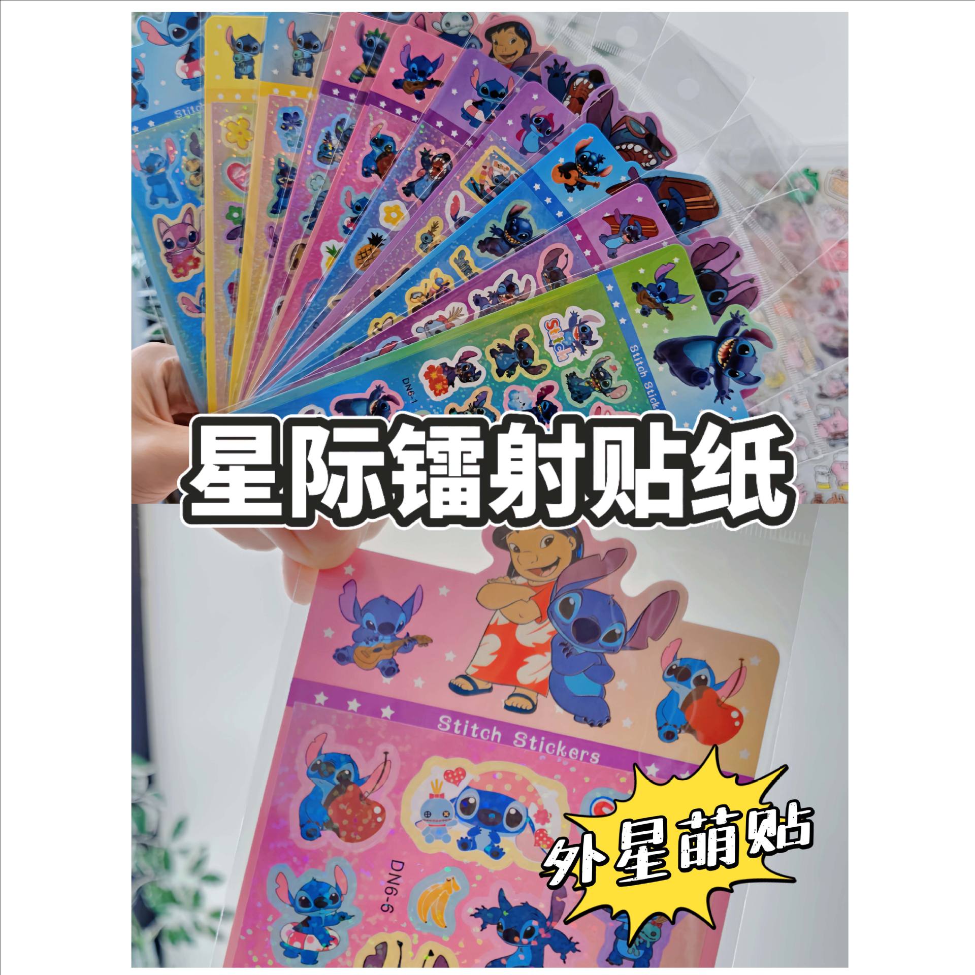 대외 무역 국경 스티치 레이저 구오 카드 스티커 스타 아기 스티치 DIY 휴대 전화 장식 손 계정 스티커