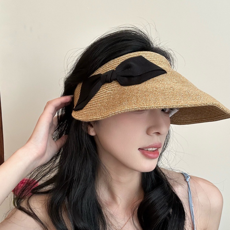 일본식 나비 매듭 밀짚 빈 모자 여성 여름 큰 챙 태양 모자 여행 태양 모자 모자가없는 태양 보호 모자