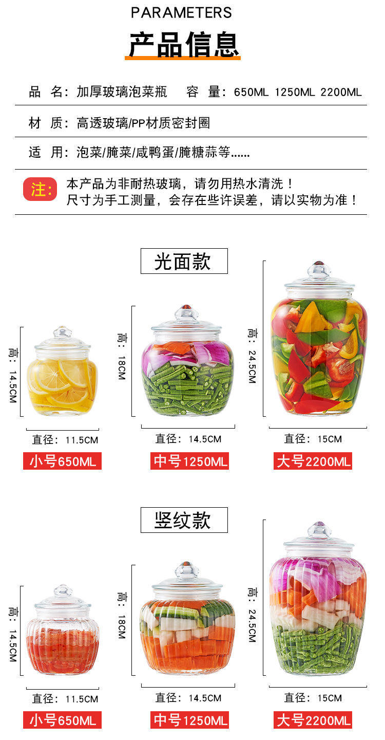 피클 항아리 유리 피클 항아리 가구 절임 과일 주방 거친 곡물 밀봉 보관 항아리 유리 항아리
