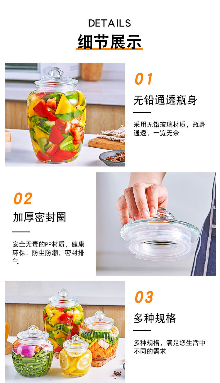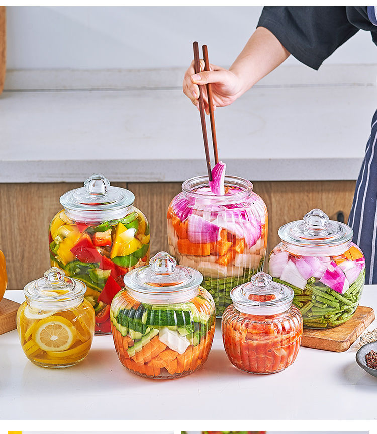 피클 항아리 유리 피클 항아리 가구 절임 과일 주방 거친 곡물 밀봉 보관 항아리 유리 항아리스토어 가기