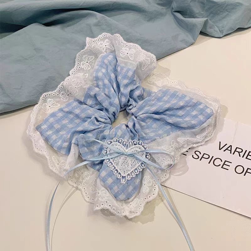 바다 소금 거품 ~ 푸른 격자 무늬 활 레이스 스퀘어 스카프 큰 장내 머리 반지 여성 한국식 대형 헤드 라인 헤어 액세서리 여름