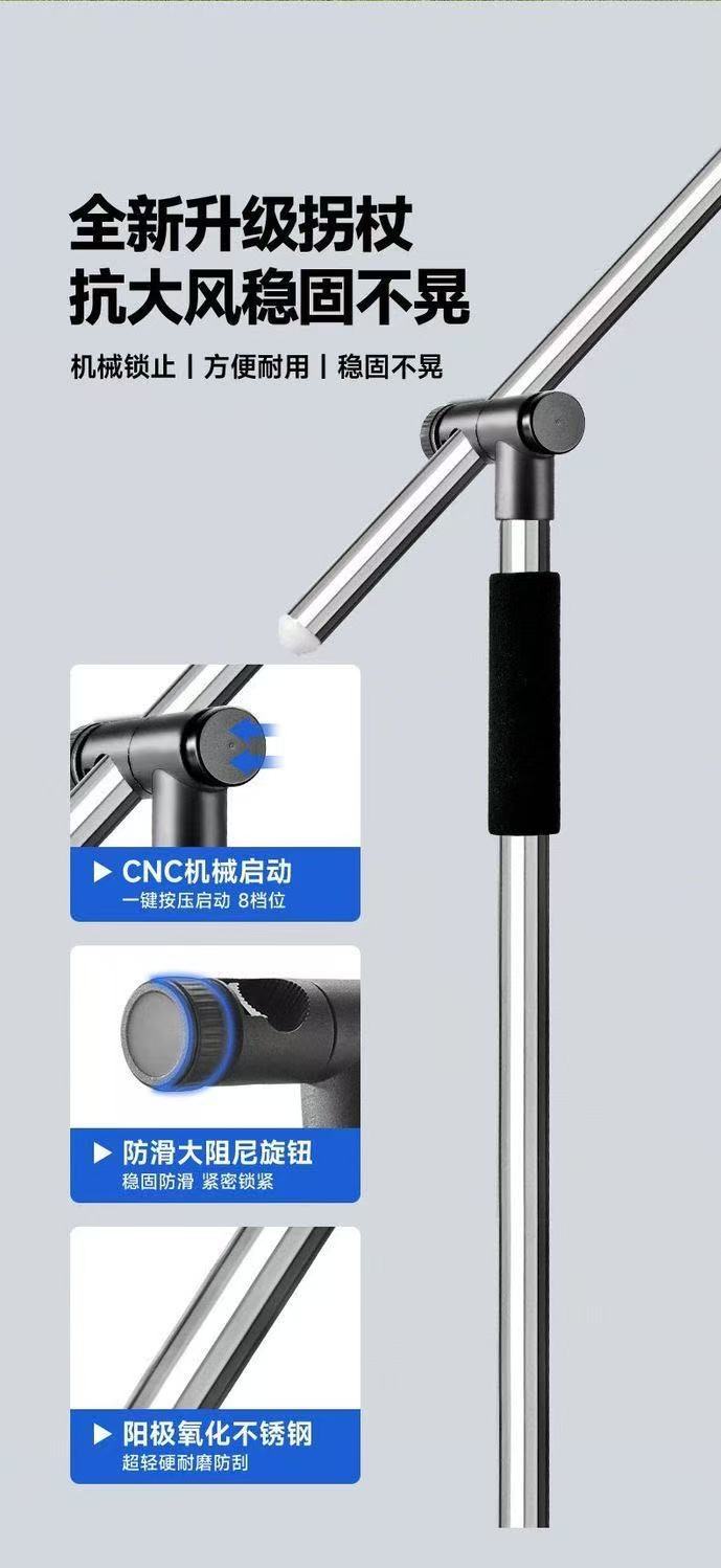 • [이중 360도 조절, 경화 스테인레스 스틸 폴, 강풍 방지, 폭우 방지] 목발 우산 비닐 카드 2.4m