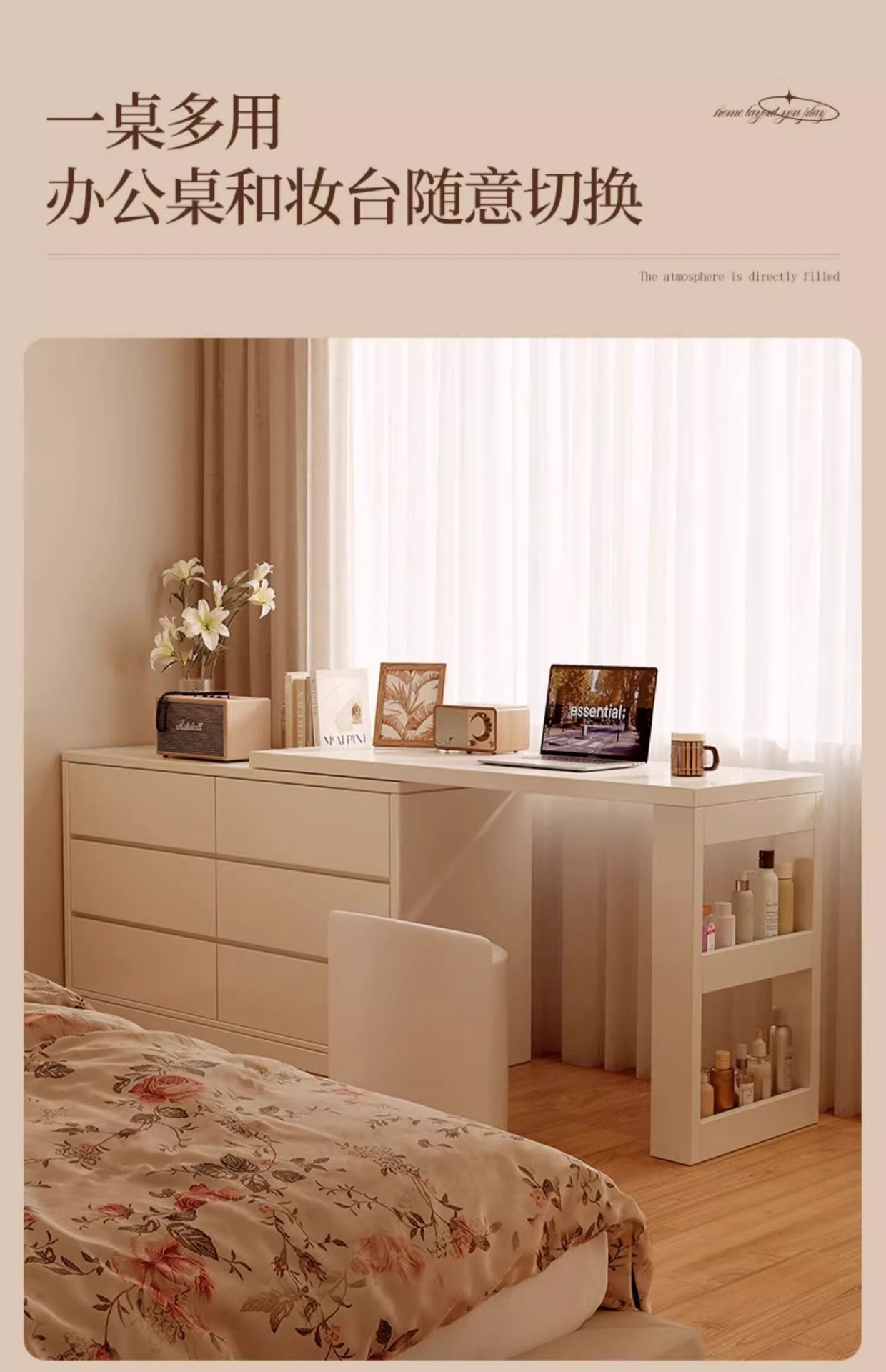 드레싱 테이블과 캐비닛 통합 현대 침실 간단한 2025 새로운 프랑스 스타일 메이크업 테이블 침대 끝 캐비닛 컴퓨터 테이블 저장스토어 가기