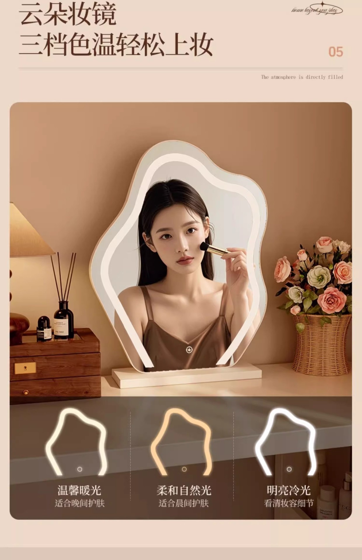• [수납공간 + 구름거울 + 가죽스툴 조합] 1m 테이블 + 0.8m 3단 서랍장