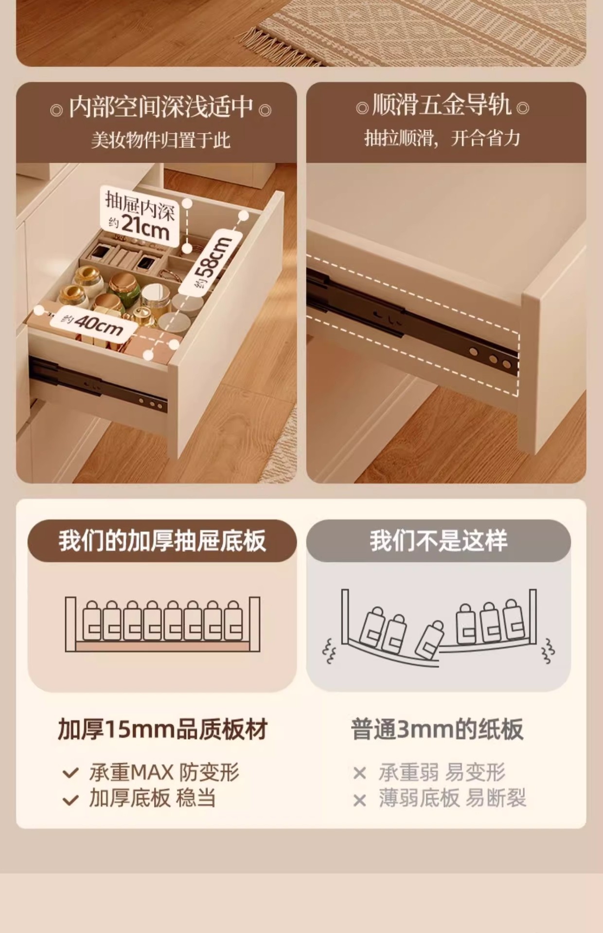 • [테이블 다리가 있는 수납 공간] 1m 테이블 + 0.8m 3단 서랍장