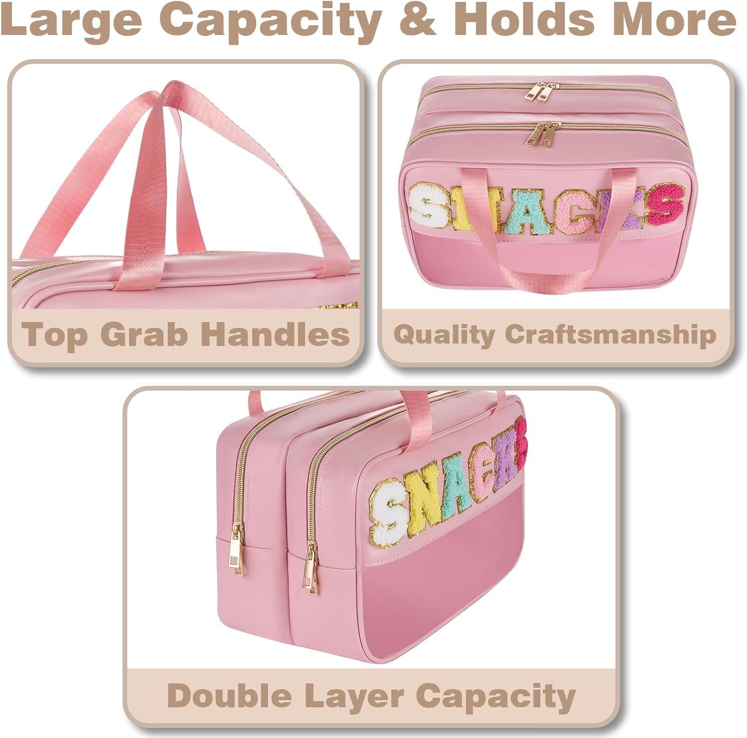 자수 문자 화장품 가방 휴대용 더블 포켓 야외 여행 대용량 화장품 보관 가방 Amazon New