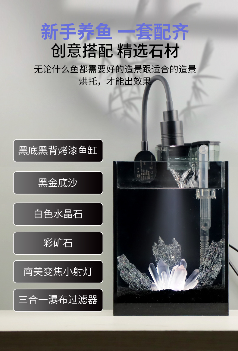 데스크탑 물고기 탱크 화이트 크리스탈 칼럼 어두운 바람 작은 울트라 화이트 유리 탱크 자체 순환 물없는 풀 세트 풍경 물고기 탱크스토어 가기