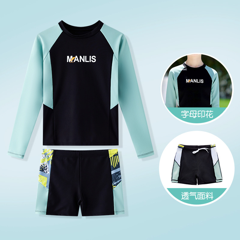어린이 수영복 여름 새로운 긴팔 스플릿 태양 보호 속건성 수영복 소년 농구 축구 스포츠 슈트