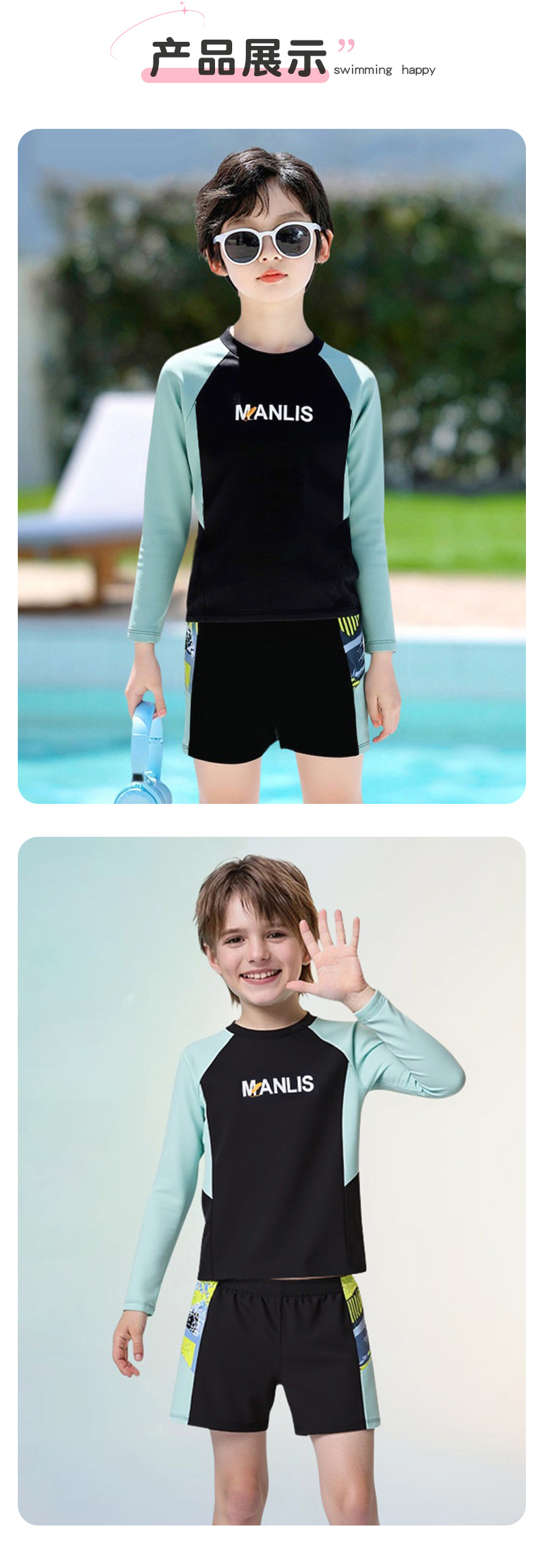 어린이 수영복 여름 새로운 긴팔 스플릿 태양 보호 속건성 수영복 소년 농구 축구 스포츠 슈트스토어 가기
