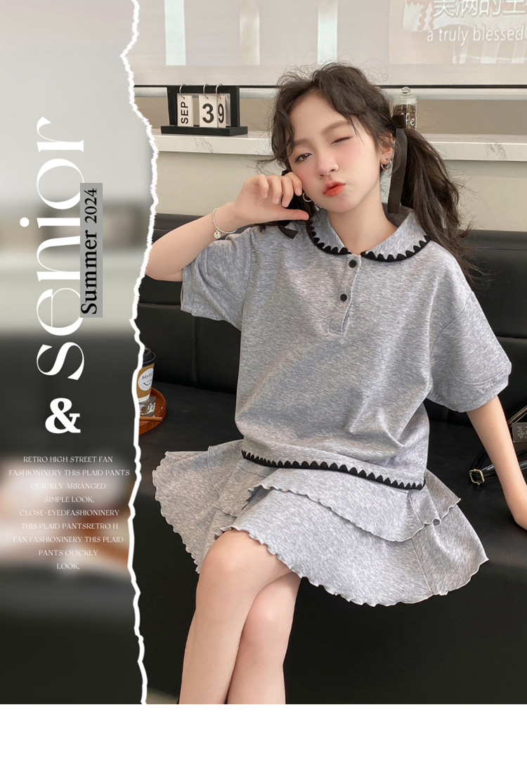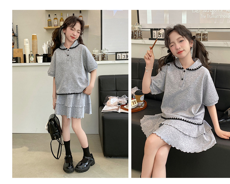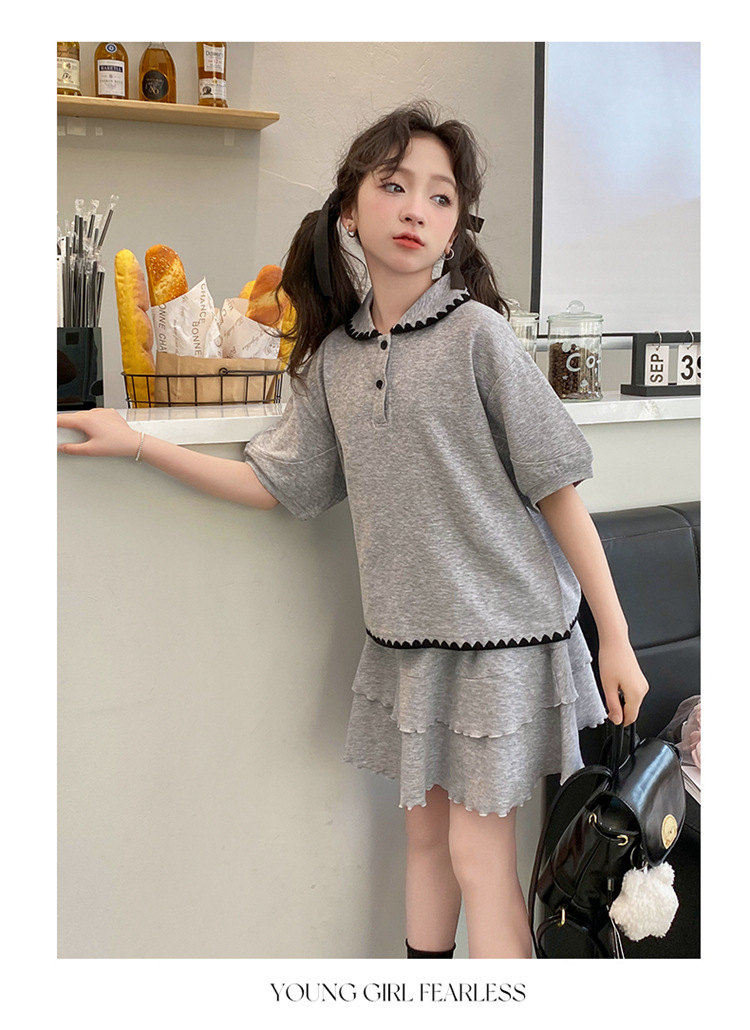 여자 여름 원피스 여름 2025 새로운 스타일 서양 스타일 큰 어린이 대학 스타일 스커트 세트 어린이 공주 원피스