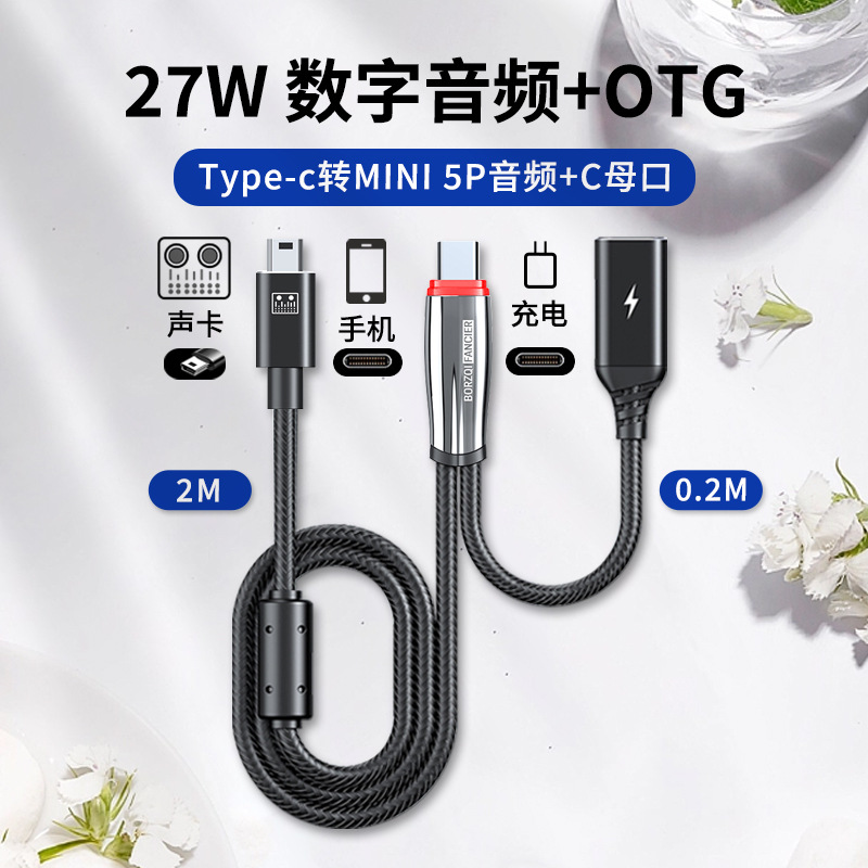 • Typec - MINI 5P 오디오 + C 포트 암 헤드 [모든 Apple 15 사운드 카드 케이블 시리즈에 적용 가능] 디지털 오디오