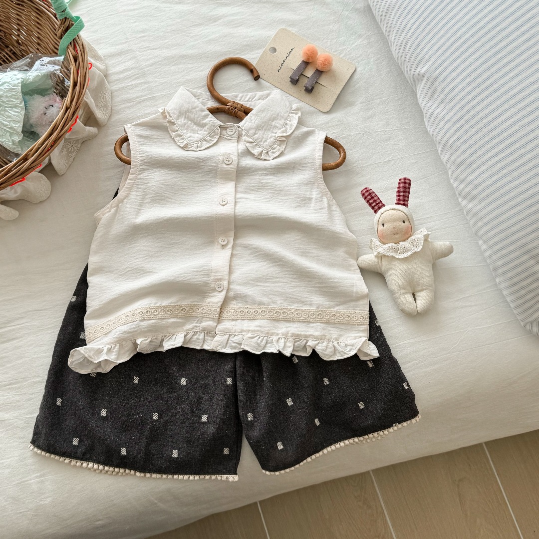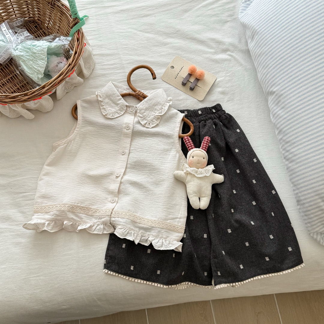 [핑크하우스] 여름 조끼 세트 여아용 새 민소매 셔츠 탑, 유치원용 세련된 와이드 팬츠