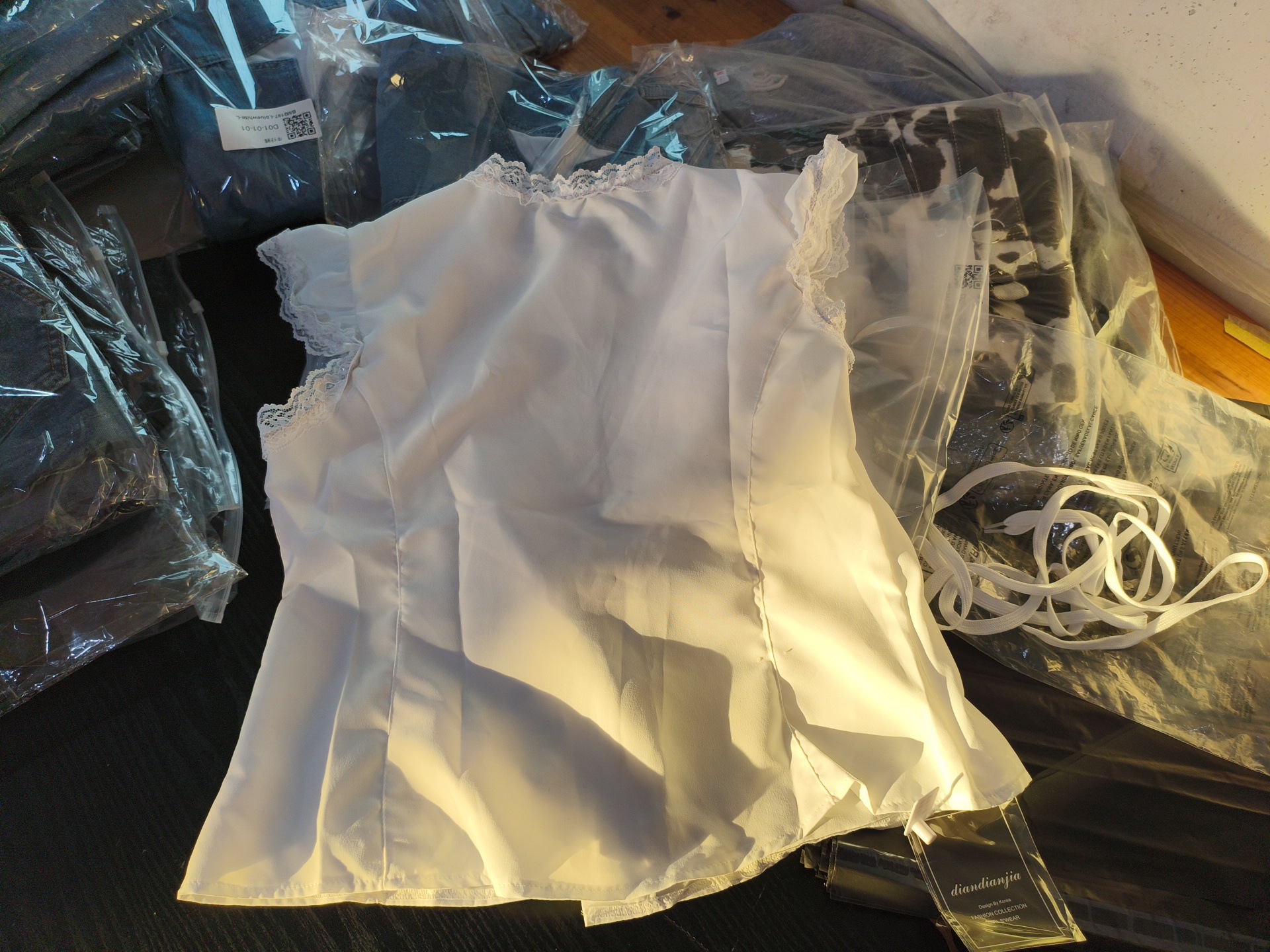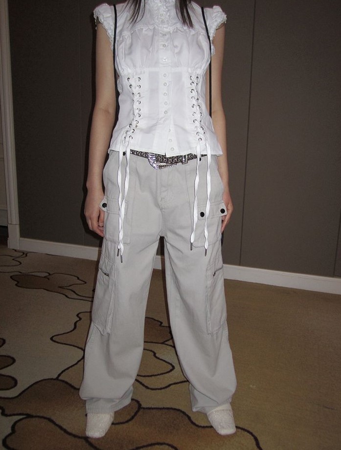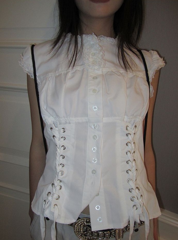 Y2k 유럽과 미국의 복고풍 레이스 허리 스트랩 작은 플라잉 슬리브 브레스트 셔츠 여성 달콤한 기질 틈새 디자인 조끼스토어 가기