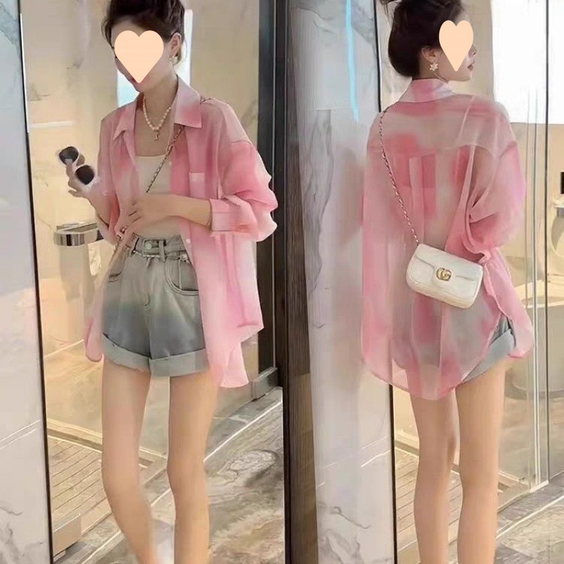 달콤한 도파민 퀵 샌드 파우더 긴 소매 썬 셔츠 여성의 여름 중반 길이 편안한 서양식 얇은 셔츠스토어 가기