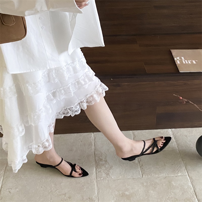 두꺼운 뒤꿈치 실버 프렌치 뾰족한 스트랩 샌들 페어리 슈즈 2025 새로운 여름 스커트 클립 토 로마자스토어 가기