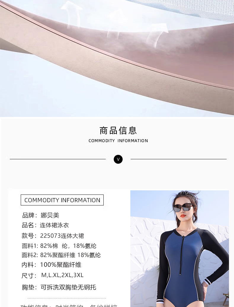 Nabemei 25 여성용 신형 원피스 수영복, 허리 슬리밍, 배 커버, 인기 긴팔 자외선 차단 수영복 도매 및 배송스토어 가기