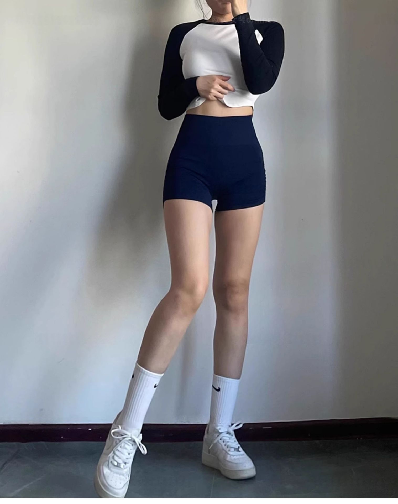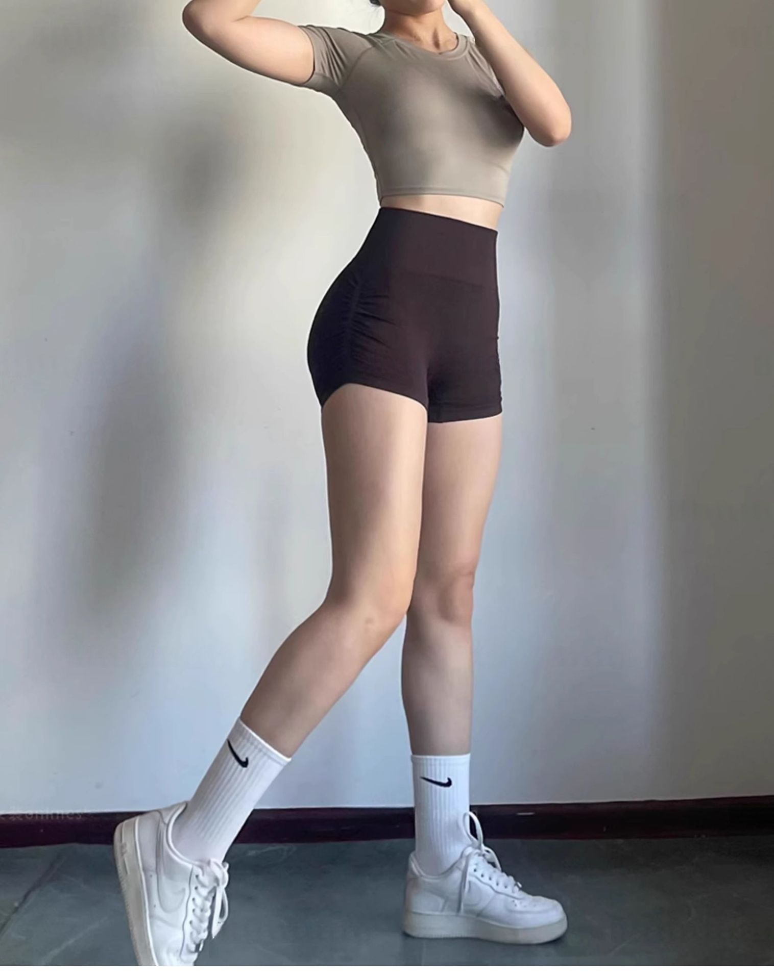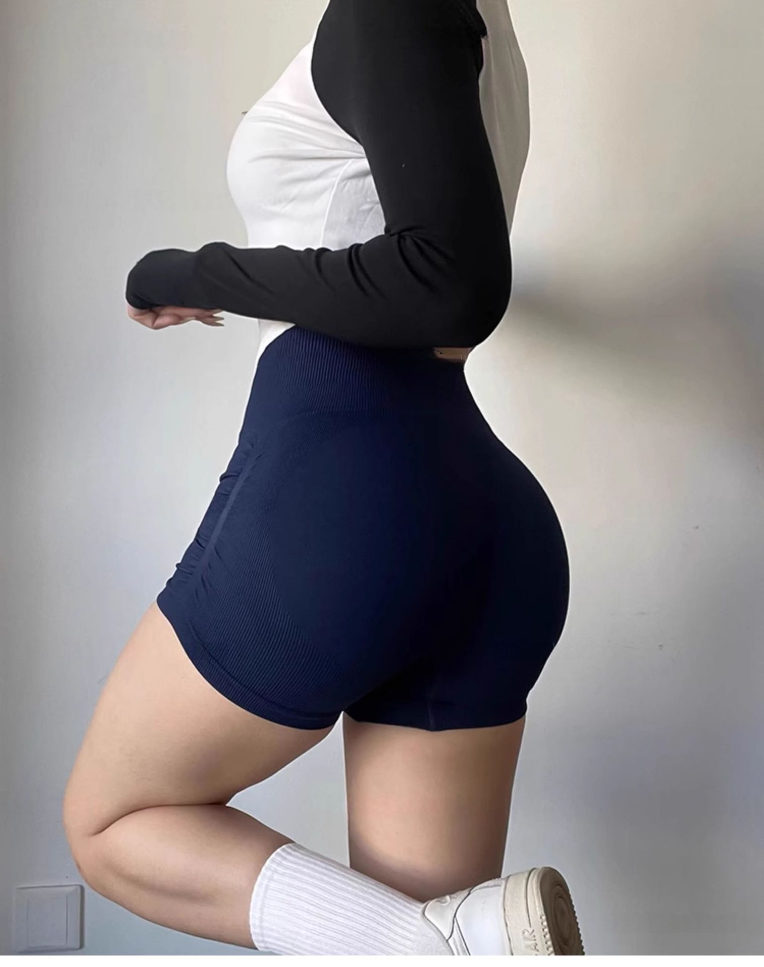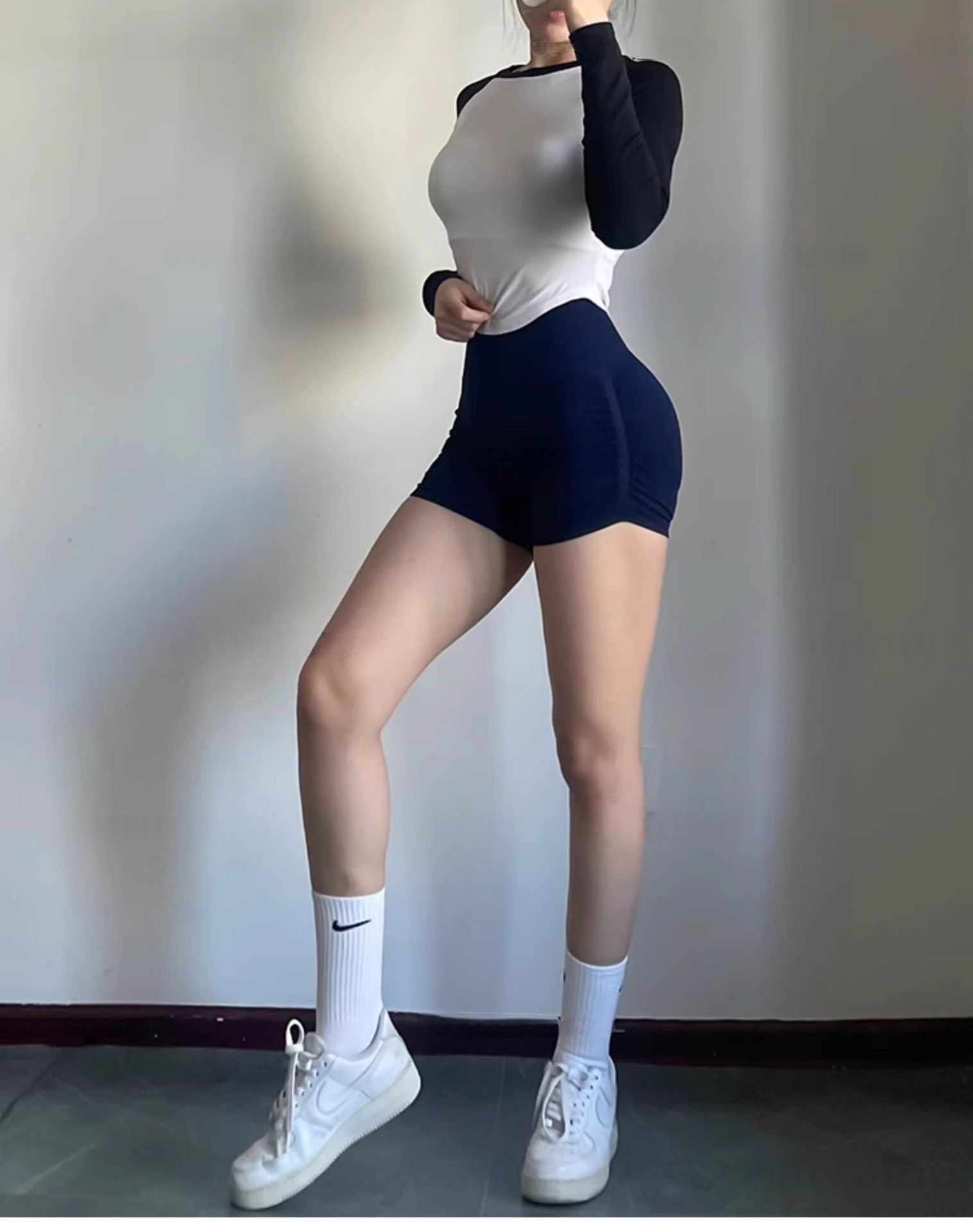 유럽과 미국의 복숭아 피트니스 반바지 높은 허리 훈련 엉덩이 리프팅 3 점 바지 엉덩이 다리 긴 스포츠 요가 바지 여자 1758