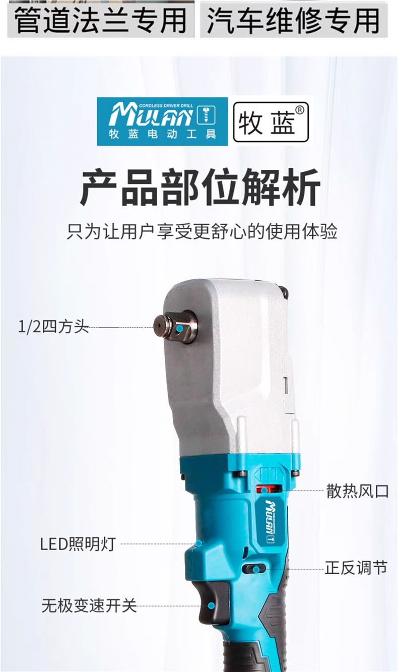 독일 전기 래칫 리튬 렌치 대형 토크 회전 경운기 블레이드 특수 90 도 직각 트러스 앵글 렌치