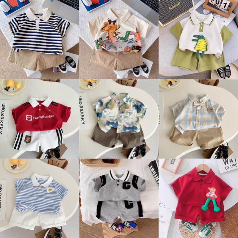어린이 여름 반팔 세트 2025 새로운 소년 아기 외국 스타일 여름 반팔 반바지 투피스 공급스토어 가기