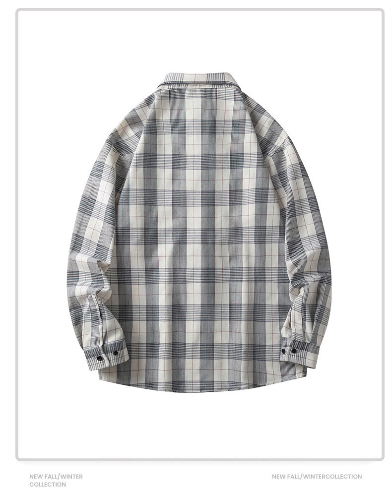 격자무늬 라운드넥 셔츠 긴팔 봄가을 남성용 2025 신상 빈티지 남성 이너웨어 셔츠 반팔